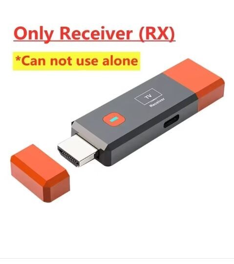Specifications Connector Type Wireless Origin Mainland China Brand Name VIKEFON Certification CE,RoHS,FCC Description Upgraded to 8TXs can pair with 1RX !!!! The TX and RX can not use alone. So please carefully to choose what you need!!! 【Many-to-One Mode】 8 transmitters can be connected to 1 receiver at the same time, one click switch, does not interfere with each other, and multiple screens can be shared. *Note: This operation requires additional purchase of transmitters, and the 1 receivers can support up to 8 transmitters. 【Dual Screen Output】 HDMI-Compatible can be collocated freely and output at the same time or separately. Transmitted signal is crystal clear, able to stream uncompressed HD video & audio with ease. Signal experiences Ultra Low latency (real time) even when streaming 3D video to a 1080p device. 【No WiFi Required】 Place a TV anywhere within 50 meters from the source with included transmitter and receiver. Simply connect the transmitter to a set top box, gaming console, or other HDMI output device and connect the receiver to any HD display. 【Plug and Play】 Get up and running in 20 seconds with a true plug-and-play experience. Connect the transmitter to the HDMI source, then connect the receiver to the secondary HDTV, and you are ready to go. Operates on standard 802.11 5GHz. 【Highly Compatible】 HDMI interface is highly compatible and can be convertible to other interfaces. VIKEFON The device with HDMI interface can be used directly, and the device without HDMI interface can be used with HDMI converter. Wirelessly stream true 1080p high definition 3D video & digital audio to your TV or projector. Watch movies & TV shows from your laptop, PC, MacBook, iPad Pro, A/V receiver, gaming console, PS4/5, Xbox, Nintendo Switch, cable/satellite Product Name : Wireless Display Adapter Resolution : 1080P Power Supply : 5V/2A Band : 5.8G Shell Material : ABS Transmission Distance : outdoors open space can reach 50M,indoor without any barriers around 30M ( Pls noted that this model does not support through the wall,if you need to use via wall pls choose our through-wall version) Selling Points: 1. Light,Small and ultra-mini appearance,easy to use, easy to carry out, very convenient; 2. HDMI video and audio transmission via built-in wireless transmission protocol,no need wifi or internet. 3. Plug and play, not need to install any driver and Apps. 4. It is widly used for Big screen video conference / home entertainment / online learning / business speech education training /playing game etc. More shocking,more relax, and is better for protecting eyes. 5. Support mirror and extended modes. 6. Support one to one mode and many to one mode ( up to 8 TXs to 1 RX) Package Content: * Wireless Transmitter Unit--------1PC * Wireless Receiver Unit------------1PC * Type-c Charging Cable------------2PCS * User Manual-----------------------1PC Upgraded to 8TXs can pair with 1RX !!!! The TX and RX can not use alone. So please carefully to choose what you need!!! NOTE: We have 3 types options, So please carefully to choose what you need.