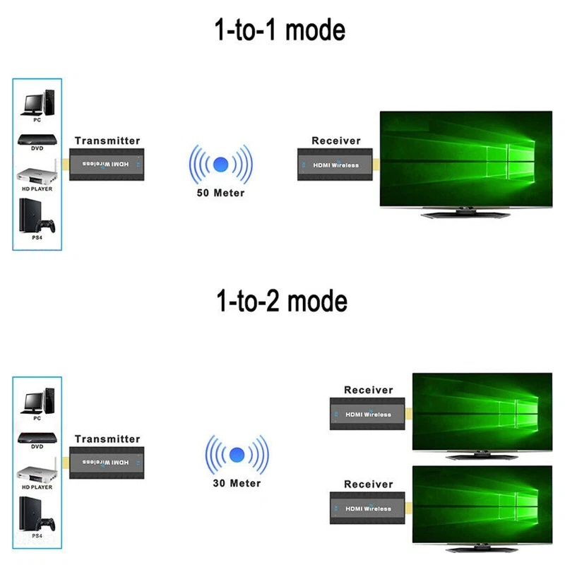 Description: Fast Shipping, Fast Delivery. HDMI H.265 Wireless Extender Full HD 1080P Product Description: Brand new and high quality,buy with confidence Note:The (RX=) Receiver cannot be used alone, it must be used with a (TX) Transmitter! 1 TX can pair with up to 2 RXs,pls buy the extra RX according to your needs 1.0 Introduction: This HDMI extender built-in wireless transmission protocol,it can wireless transmit HD audio and video signal, at the same time,The equipment has excellent image processing and transmission capacity,makes signal transmission more smooth and steady,is a kind of economic and efficient way of HDMI signal extension. 2.0 Features: 1. HDMI video and audio transmission via built-in wireless transmission protocol, up to 50 meters under 1-to-1 mode,up to 30 meters under 1-to-2 mode Can't go through walls,pls use it in a barrier-free open space, because the walls,barriers will block signal transmission,the actual transmit distance depends on the actual use condition, if need to use go through wall,pls contact us. 2. HDMI 1.3 compatible; 3. In accordance with standard HDCP1.2 ,high-bandwidth digital content protection technology; HD video signal resolution up to 1920x1080@60Hz; Special format is to compress and decompress video,effectively improve the transfer efficiency,to ensure that the playback fluency; Able to automatically identify and configure a variety of display mode; Built-in automatic balance system, the picture is fluent, clear and stable; The built-in ESD electrostatic protection circuit, comprehensive security protection system; Simple and convenient installation, plug and play, do not need to set up. 3.0 Packaging Accessories FOR a set of "1 TX and 1 RX" : 1. HDMI transmitter------------------------------------------------1 PCS 2. HDMI receiver ---------------------------------------------------1 PCS 3.HDMI Male to Female Extension Cable -------------------2 PCS 4. USB Power Cable-----------------------------------------------2 PCS 5. User Manual------------------------------------------------------1 PCS Note: if you only buy 1 RX,it comes only the accessories of RX. NO TX's No retail box and other accessories,if any need,pls contact us first 4.0 Technical parameters: Parameter Description Video Standards HDMI 1.3; HDCP 1.2 Compressed format H.265 Maximum pixel clock 165MHz Maximum data rate 6.75Gbps Resolution Max: 1920X1080p@60Hz Connector HDMI-AM Impedance 100Ω Recommend HDMI maximum input/output range Less than 5 meters, when 1920 x1080p@60Hz WIFI Radio Frequency power 13dbm Wireless standards 802.11ac signal direction Unidirectional Radio frequency 5.8GHz Transmission distance 50M(Max) Other Power DC 5V Power dissipation MAX 5W Temperature Operating:-5℃ ~ +70℃ Humidity Operating:5% ~ 90% Size 90*39*10mm Retail Package No Payment Policy We accept Paypal ONLY currently. For specific requirements, please feel free to contact us. We appreciate a positive feedback as much as you do. We will leave a positive feedback immediately when you give us a positive one. Payment should be completed within 5 (Five) days after placing an order. Cancellation request should be submitted during this period. Or unpaid dispute will be open automatically. Shipping Policy We ship to Paypal registered address, please make sure your address in Paypal was matched with your current location. Item will be shipped within 1-5 business days when the payment verified. The date may be delayed due to uncontrollable reason. we will inform you via eBay message. The images are for reference only. please take the item you get as the standard. Please indicate your personal requirement such as colors, packages, value of declaration etc. at message when you pay to us. This requirement must inform before the shipment arrangement. We will NOT responsible for any delay during delivery including but not limited to customs postage checking, strike, force majeure etc. Notes, the delivery time may vary due to public holidays, natural disasters, customs issue and other unexpected impact, etc. The date may be delayed due to uncontrollable reason. we will inform you via eBay message. Returns Policy Please note that the return address must be provided by us. We will reject all return of the package without agreement, regardless of whether a return request is filed. All of our items are backed with a 30-day return policy. We ensure all our items are new and in excellent condition prior to shipping. In case you receive the item that is not to the standards above, please contact us via e-Bay messages. All returns must be in new original condition as received and should be shipped with delivery confirmation Please note that all returns must be pre-approved by us. Unauthorized returns will not be accepted. If you need to return, please check twice to confirm the item not work and contact our customer service representative, let us know the detailed problem and send us some pictures for confirmation. Contact us Please contact us via ebay message. all questions will be replied within 24 working hours. Customer Support Online: 9am-18pm (GMT +8) Monday - Friday When you want to: Cancel an order All Refund concerns and questions Technical Questions assembly instructions for a product Any other unspecified questions or concerns. About us Welcome to our eBay store. As a E-commerce company, we are specialized in Business and Industrial Products, Home and Garden products. Our vision and mission to provide innovative products with best service and competitive price to satisfy you. Our mission is make sure that you can find exactly what you are looking for and make it easy for you to place your orders.