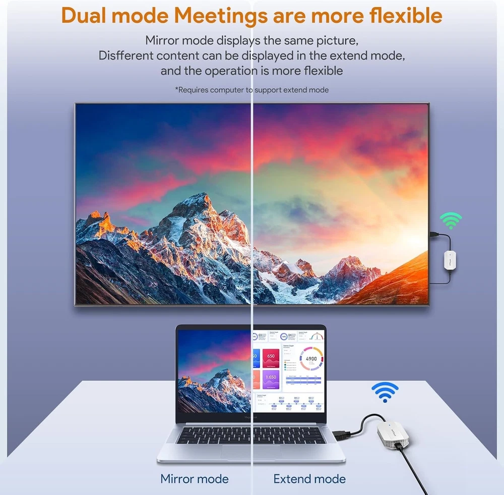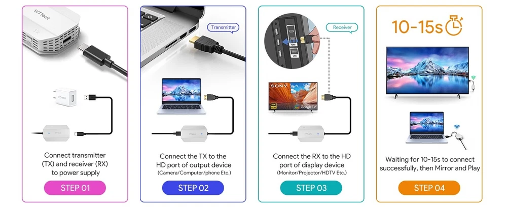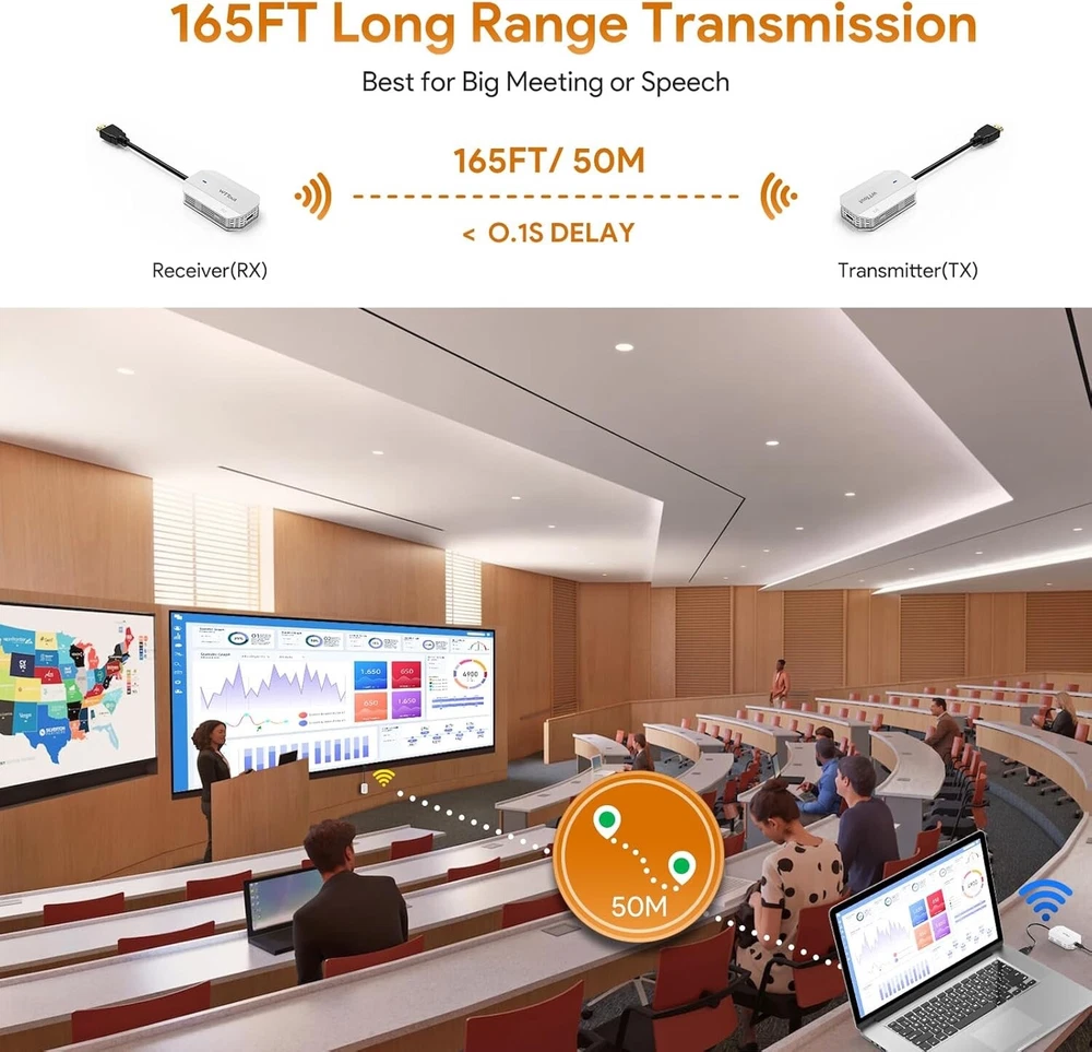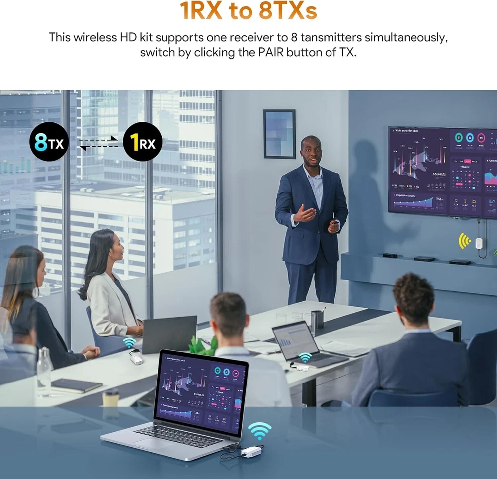 Effortless Setup: The WTTout Wireless HDMI Transmitter and Receiver are factory-paired for instant use. Just connect, and you're set. No apps, Bluetooth, Wi-Fi, or drivers needed – it's incredibly straightforward and user-friendly. Reliable Stability & Minimal Latency: The WTTout HDMI Wireless transmitter and receiver boast a robust video encoder/decoder and incorporate a 2.4GHz/5GHz Wi-Fi module with high-sensitivity antennas, delivering exceptional screen mirroring performance. With a mere 1-second latency, you can immerse yourself in a smooth and lag-free viewing experience. 1080P Mirroring on the Big Screen: Transform your TV into an entertainment hub with the WTTout Wireless HDMI Kits, which effortlessly stream audio and video to your large display with minimal delay. Supporting resolutions of 720p and 1080p, this HDMI extender enables you to enjoy popular apps like Prime Video, Disney+, and more. Dive into movies, live sports, Super Bowl, World Cup matches, and gaming with your friends and family. Wireless Transmission up to 165FT/50M: The WTTout wireless HDMI extender boasts impressive long-range transmission capabilities, allowing audio and video signals to be wirelessly transmitted to HDMI displays with a clear range of up to 165FT. (NOTE: Its powerful signal can even penetrate walls, floors, and ceilings, but when facing obstacles like walls, floors, ceilings, or doors, the transmission range will be reduced, and the wireless transmission signal will weaken). Buyer pays actual USPS shipping cost.