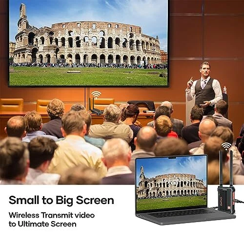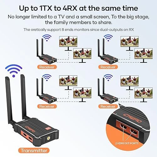 Return Policy Fast Delivery Trusted seller Wireless HDMI Transmitter and Receiver 4K, HDMI Wireless Video Transmitter Dual-Outputs Streaming Live Video/Audio/File with Loop Out from PC/Laptop/Set-top Box/DSLR to Monitor/Projector/TV 4K Product Description 【True 4K Input/Output/LoopOut】 The wireless HDMI transmitter and receiver 4K support resolutions up to 4K30Hz, with Input, Output, and Loop out capabilities. Noted 4K transmission requires both the video source device and peripheral devices to support 4K30Hz output/input. For example, when the TV Settop box only supports 1080P60Hz and not 4K30Hz, the device resolution automatically drops to 1080P60Hz. 【Dual Outputs on RX , 1 TX to 4RXs】The wireless HDMI extender kit supports 1 transmitter to 4 receivers simultaneously, with each receiver having 2 output ports. This 4K wireless video transmission system allows for more monitors on the receiving end and enables sharing of the video with a larger audience. Note: Increg the number of RX will reduce the transmission distance accordingly. 【4K Long Range 490FT,Low Latency 0.1S】Our wireless video transmitter and receiver features a 2.4G/5GHz dual antenna design, enabling further signal transmission with low latency of just 0.1s. It can transmit HDMI 4K signals up to 490FT(150M) in line-of-sight. 【Plug &Play】The wireless HDMI transmitter and receiver are paired before delivery.Setup is quick and easy,no software to install,eliminate cable clutter, get up and running in minutes with a true plug-and-play experience. Connect the transmitter to the HDMI source, then connect the receiver to HDTV, and you’re ready to go. 【Professional Customer】Our products are backed with a 1-year limited warranty. If you have any questions or concerns, on our name in the buy box and select "Ask a Question". Shipping Returns Payment Shipping Shipping is FREE to all addresses other than APO/PO boxes in the lower 48 states. All our stock ships from US-based warehouses. Shipped via USPS or UPS (depending on location and package weight) Unless stated otherwise, all orders will ship within 24-72 hours of your payment being processed. Check our feedback to see the great reviews of FAST shipping we offer. Returns Seller does not accept returns Payment We currently accept payment via eBay managed payments only. Once payment is cleared, we will dispatch your shipment within 1-3 business days. Please refer to the "Shipping" tab for more information regarding shipping speed to your destination.