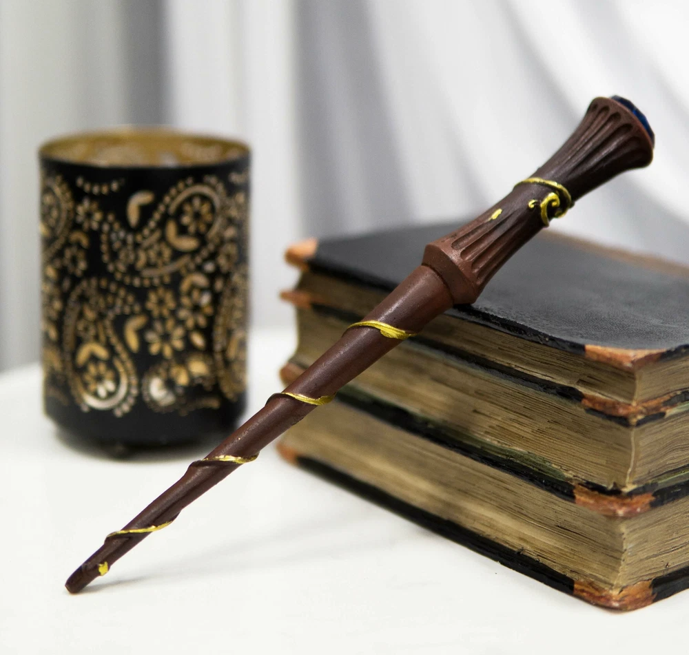 • This Blue Rhinestone Magic Wand measures 9.5" tall, 1.25" wide and 1.25" deep approximately. The Magic Wand weighs about 3 ounces. • This Blue Rhinestone Magic Wand is made of designer composite resin, hand painted and polished individually. It is finished in faux wood color and texture with a blue colored rhinestone at the base handle of the wand. Although it is made of hardened composite resin, this wand is not recommended for children under 9 years old as care is needed during use to prevent breakage/damage. • Summon, enhance and imbue your mightiest spell with this legendary magic wand. It will complete your wizardry costume whether it be for Halloween parties, magic themed events or what have you. • This magic wand according to the Ministry of Magic holds immense power. Designed in faux wood colors, the wand features a golden vine that curls from the bottom to the top with the image of the Evil Eye as the centerpoint of the handle. At the base is a blue rhinestone crystal that enables its wizard/with to focus his/her powers before unleashing its magic. • This is an Ebros Gift exclusive collection. It comes with our Ebros Gift Satisfaction Guarantee when sold by Ebros Gift.