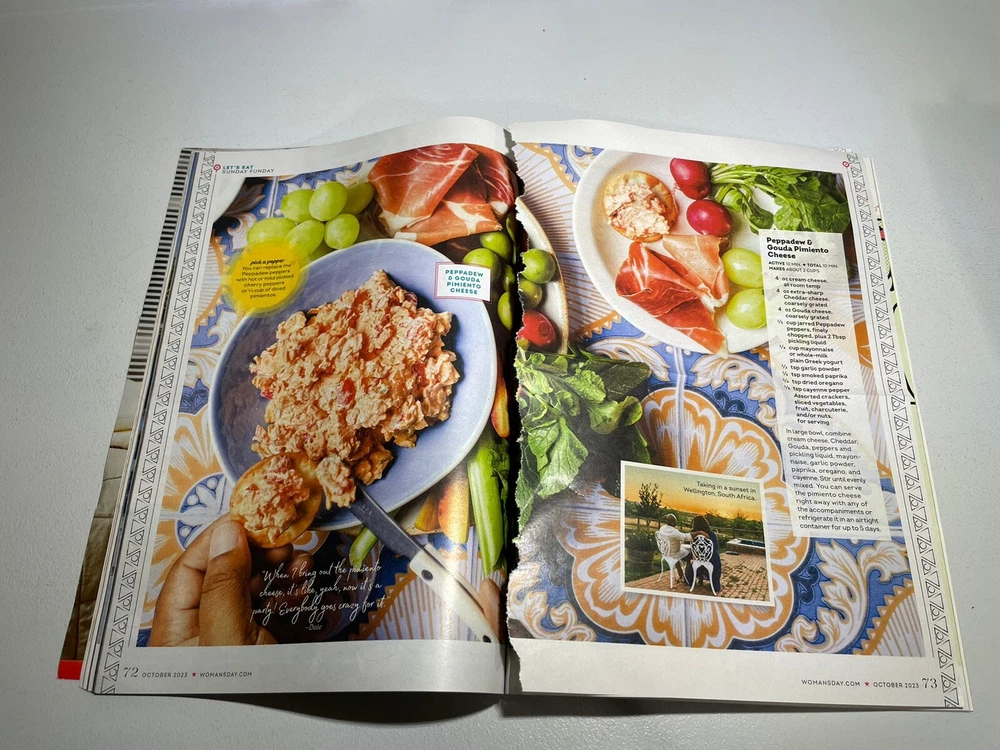 Page 73/74 was torn out as shown in photo but is loose in magazine. Get ready for the spookiest season with the October 2023 issue of Woman's Day magazine, featuring a special Halloween edition. This physical English-language publication includes articles on home and garden, as well as topics for women. Produced in the United States, this issue was published without a signature and is not a subscription. The genre of this magazine falls under the categories of books and magazines.