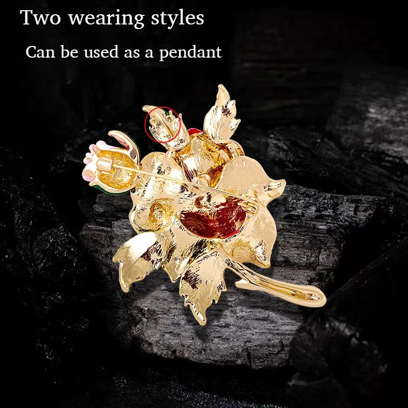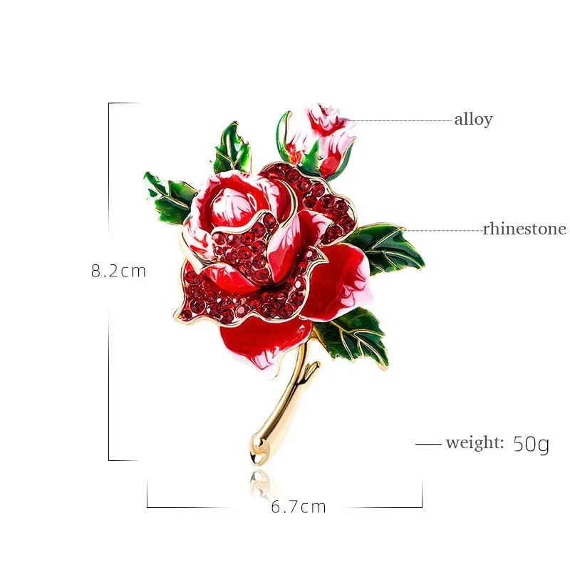 Women Elegant Luxury Red Roses Rhinestone Brooches Pins Exquisite Noble Jewelry