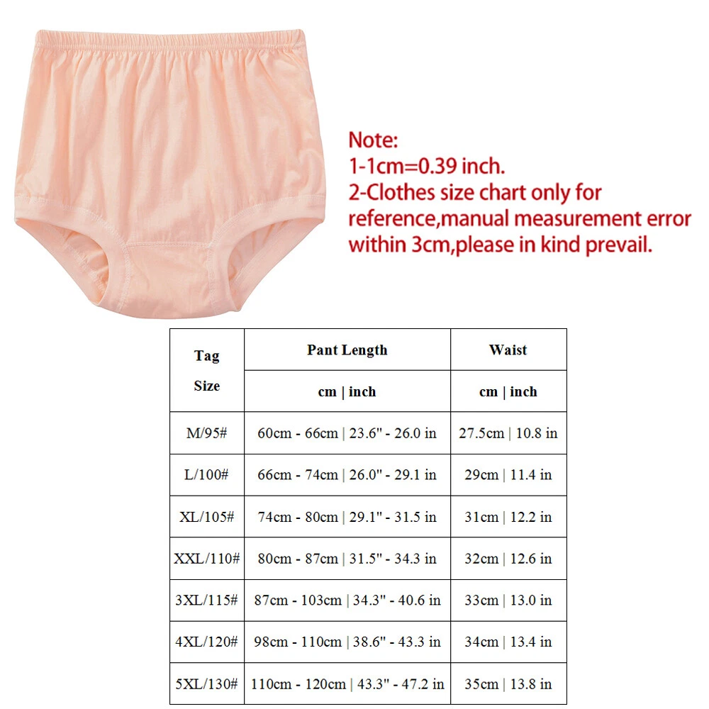 Women Loose-fit Briefs Soft Breathable Mother Grandma Shorts Underpants Simple Features: High Waist Design :The high waist design of these underwear provides a comfortable fit for middle-aged and elderly people, offering a snug yet relaxed feel. Plus Size Availability :Available in plus sizes, these briefs cater to a wide range of body types, ensuring everyone can find a comfortable and stylish underwear option. Cotton Material :Made from soft cotton, these briefs provide maximum comfort and breathability, making them ideal for everyday wear. Shorts Style :The shorts style of these briefs adds a unique touch to your underwear collection, offering a blend of comfort and style. Gender: Women Season: Spring,Summer,Autumn,Winter Color: As shown Material: Cotton Size Available: M,L,XL,2XL,3XL,4XL,5XL Pattern Type: Solid color,Flowers Waist Type: High Waist Note: Asian size runs smaller than EU/US size. Please check the detailed measurements but not select by habit. Due to the light and screen setting difference, the item's color may be slightly different from the pictures. Please allow slight dimension difference due to different manual measurement. Package Included:1 x Women Panties