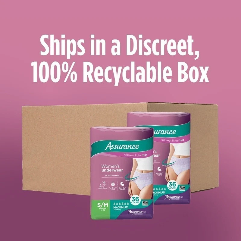 Cozy Electric Heating Blanket Faux Fur Soft Warm Throw Home Office Use 53.47 USD 57.49 USD Free shipping 7% off Bagless Upright Vacuum 720W Lightweight Multi Surface Cleaner 25ft Cord New 75.7 USD 81.4 USD Free shipping 7% off Soft Heated Blanket Twin Sherpa Electric Auto Off 5 Heat Settings Comfortable US 41.84 USD 44.99 USD Free shipping 7% off Bulk 2-Ply Toilet Paper 96 Rolls 400 Sheets Soft Biodegradable Commercial Use 48.83 USD 52.5 USD Free shipping 7% off Electric Heated Blanket Soft Warm Auto-Off 5 Heat Settings Safe Eco-Friendly New 41.84 USD 44.99 USD Free shipping 7% off Convertible Futon Sofa Bed 3 Adjustable Positions Stain Resistant Compact Design 142.22 USD 152.92 USD Free shipping 7% off All Purpose Lawn Food 6-4-0 Fertilizer Slow Release Organic 32 lbs Non Burning 34.35 USD 36.94 USD Free shipping 7% off Large Gravity Pet Waterer Dogs Cats Easy Clean Hydration System 4 Gallon New 34.35 USD 36.94 USD Free shipping 7% off Adjustable Freestanding Rifle Rack Holds 10 Guns Easy Assembly Gun Display Stand 46.35 USD 49.84 USD Free shipping 7% off 300ct Baby Wipes Light Fresh Chamomile Hypoallergenic Soft Thick Resealable New 12.37 USD Free shipping Men's Maximum Absorbency Guards 52 Count Discreet Breathable Incontinence Pads 20.65 USD Free shipping Premium BBQ Apple Wood Chunks Smoking Grilling 500 Cu In Natural Flavor New 16.15 USD Free shipping Rest Assured with At , we believe bladder leakage shouldn't disrupt your daily life. That's why we thoughtfully designed our Incontinence & Postpartum Underwear for Women with your maximum discretion and protection in mind. Unlike ordinary adult diapers, our smooth-stretch fit contours to your body and our unique skin-soft 100% breathable material make for an underwear-like fit and feel you can depend on. Incontinence & Postpartum Underwear for Women are designed with a unique Tri-Thin absorbent core and anti-odor feature helps keeps you feeling comfortable for up to 8 hours - that is a full work day! Made with you in mind, Underwear for Women helps you feel comfortable and dry while living your active, on-the-go lifestyle. for All! Available in sizes Extra Small, Small/Medium, Large, Extra Large and Extra Extra Large we believe in providing you the best value for your products no matter what size you are in. Our smooth-stretch fit provides a full coverage design made for your body shape and comfort. 72 count contains 2 bags of 36. *when the moisture barrier is tested alone Incontinence & Postpartum Underwear for Women, Maximum Absorbency; Discreet fit for her Our smooth-stretch fit provides a full coverage design made for your body shape and comfort Maximum absorbency Features Tri-Thin Core: sleek and super absorbent Skin soft fabric, 100% breathable Anti-odor: helps neutralize odors for complete discretion 72 count contains 2 bags of 36. You may also like Handwoven Cotton Accent Rug 24x40 Rectangle Fringed Indoor Striped Low Pile New 28.87 USD Free shipping Cozy Velvet Plush Blanket Reversible Medium Weight Warmth Bed Living Room New 51.51 USD 55.39 USD Free shipping 7% off 3-in-1 Tailgate Game Set Cornhole Washer Toss Ladderball Portable Outdoor Fun US 51.41 USD 55.28 USD Free shipping 7% off Extendable Lug Wrench 15 to 22 Inch Automotive Tool 4 Socket Sizes Durable Cr-V 39.37 USD 42.33 USD Free shipping 7% off Toilet Plunger Bowl Brush Sets W/ Caddy Heavy Duty Bathroom Cleaner Tools Gray 30.19 USD Free shipping Cozy Textured Plush Throw Blanket All Age Soft Machine Washable Reversible Beige 17.68 USD Free shipping 4 Piece Custom Fit Car Rubber Floor Mats Easy Clean Waterproof Universal Mats US 60.01 USD 64.53 USD Free shipping 7% off Jumbo Mesh Pop-Up Laundry Hamper Collapsible Storage Basket Clothes Toys Sports 20.66 USD Free shipping 12 Piece Stoneware Dinnerware Set Microwave Dishwasher Safe Plates Bowls New 42.08 USD 45.25 USD Free shipping 7% off 5 Gallon Utility Bucket 4 Pack Comfort Handle Nesting Plastic Food Grade Durable 24.28 USD Free shipping Plastic Laundry Basket 2 Bushel Hamper W/ 4 Carry Handles Adults Tweens New 17.46 USD 18.77 USD Free shipping 7% off Toddler Nursery Bookcases W/ 4 Shelves Engineered Wood Book Organizer Home New 39.31 USD 42.27 USD Free shipping 7% off