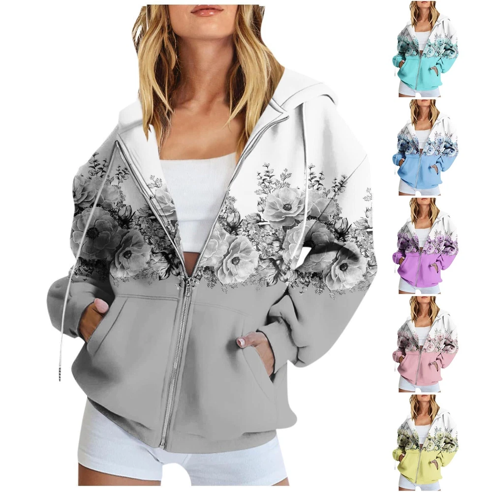 Features: Comfy Material: This womens sweatshirt is made of cotton,polyester and spandex,the material is thick and comfortable,keep you warm in fall and winter :This womens fall fashion 2023 is easy to pair with casual pants, jeans, joggers, shorts, sneaker, casual shoes to creating a fashion and pretty looking in spring, autumn and winter. You can also anything you like inside,like tank top, crop top, vest, etc. Occasion - Suitable for running, playing , dancing, cycling, playing , hiking, walking, exercising, home, daily wear, travel, for fall and winter. Design: Oversized Sweatshirt/ Hooded/drawstring Collar/ Full Zip Up Hoodie/ Gothic / Fleece Jacket/ Ribbed Hem And Cuffs/ Baggy / Crewneck Sweatshirts/ Clothes Wash - Machine washable, hand washes cold, dry flat in shade. Do not bleach. Product Description: Womens Fall Fashion Women's Long Sleeve Floral Print Sweatshirt Long Sleeve Pocket Jacket Zipper Hoodie Coat Material: polyester Color: as the picture shows, (Due to the difference between different monitors, the picture may have slight color difference. please make sure you do not mind before ordering, Thank you!) Package weight: 300g Package size: 30x25x2cm,(Please allow 1-3mm error due to manual measurement. please make sure you do not mind before ordering.) Size US UK EU Bust Shoulder Sleeve Length S 4 8 34 101cm/39.76'' 42cm/16.54'' 61cm/24.02'' 66cm/25.98'' M 6 10 36 106cm/41.73'' 43cm/16.93'' 62cm/24.41'' 68cm/26.77'' L 8 12 38 111cm/43.70'' 44cm/17.32'' 63cm/24.80'' 70cm/27.56'' XL 10 14 40 116cm/45.67'' 45cm/17.72'' 64cm/25.20'' 72cm/28.35'' XXL 12 16 42 123cm/48.43'' 46cm/18.11'' 65cm/25.59'' 74cm/29.13'' XXXL 14 18 44 130cm/51.18'' 47cm/18.50'' 66cm/25.98'' 76cm/29.92'' Size:S US:4 UK:8 EU:34 Bust:101cm/39.76'' Shoulder:42cm/16.54'' Sleeve:61cm/24.02'' Length:66cm/25.98'' Size:M US:6 UK:10 EU:36 Bust:106cm/41.73'' Shoulder:43cm/16.93'' Sleeve:62cm/24.41'' Length:68cm/26.77'' Size:L US:8 UK:12 EU:38 Bust:111cm/43.70'' Shoulder:44cm/17.32'' Sleeve:63cm/24.80'' Length:70cm/27.56'' Size:XL US:10 UK:14 EU:40 Bust:116cm/45.67'' Shoulder:45cm/17.72'' Sleeve:64cm/25.20'' Length:72cm/28.35'' Size:XXL US:12 UK:16 EU:42 Bust:123cm/48.43'' Shoulder:46cm/18.11'' Sleeve:65cm/25.59'' Length:74cm/29.13'' Size:XXXL US:14 UK:18 EU:44 Bust:130cm/51.18'' Shoulder:47cm/18.50'' Sleeve:66cm/25.98'' Length:76cm/29.92''