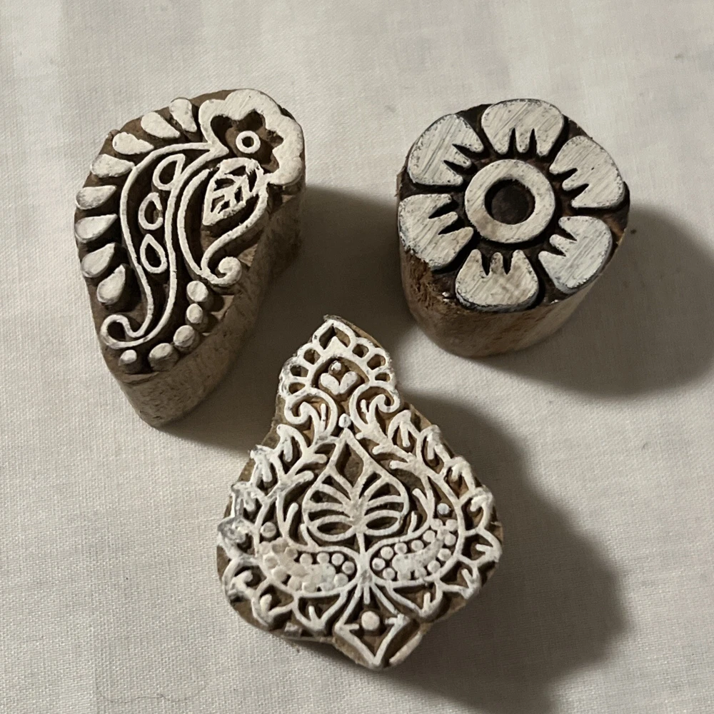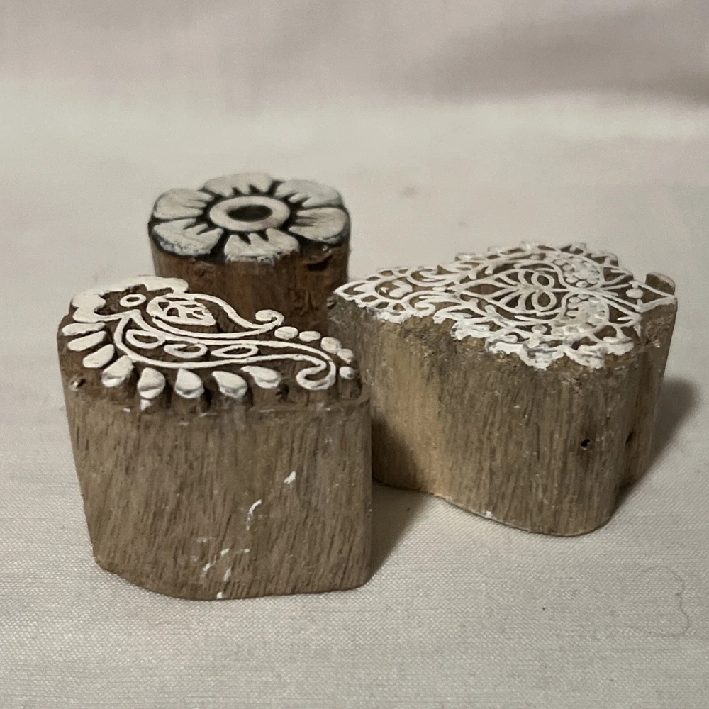 Wood Block Art Small Stamps Hand Carved Printing Block Textile Stamp Set 3 Measurements are up to 1 3/4 inches long and 1 inch tall. Some variations in colors and in wood grains. Please see photos for more details and email us if you have any questions. From a smoke-free with pets home. Payment Terms: Payment is due within 2 days of close of sale/auction. If for some reason you cannot pay within this time period, please contact us immediately. Check out our other items and email us if you have any questions. Please email us if you have any questions. We look forward to doing business with you again! Be sure to "SAVE THIS SELLER" on our Items For Sale page. dbcr-2-4