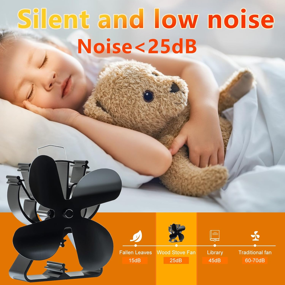 COMBIUBIU 4 Blade Wood Stove Fan, Heat Powered Fireplace Fan for Efficient Warm