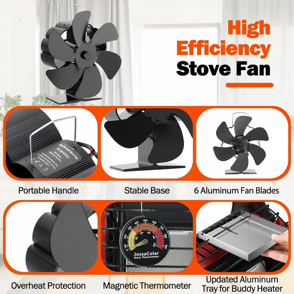 ใ๐๐ข๐๐ญ๐๐ ๐๐๐ ๐ง๐๐ญ๐ข๐ ๐๐ญ๐จ๐ฏ๐ ๐๐ก๐๐ซ๐ฆ๐จ๐ฆ๐๐ญ๐๐ซใWhether you are using a buddy heater or a fireplace with our buddy heater fan, the gifted fireplace thermometer can monitor the temperature inside the heater or fireplace. ใUsed for Big Buddy Heater and StoveใOur woodstove fan can be used either on the stove or on the buddy heater (fixed with the bracket), which is more useful. You can use it for these: picnics, barns, emergency heating, tents, workshops, winter fishing, warehouses, tailgate parties, etc. ใ๐๐๐ซ๐ฒ ๐๐ญ๐ฎ๐ซ๐๐ฒใAfter using the bracket to fix the stove fans non electric on the Mr buddy propane heater, the wood burner fan is very stable, it even can be lifted together with the heater. ใHeat powered fanใThe cocoon fan powers up by converting the heat into electricity, which makes it work brilliantly even in power outage. ใ๐๐จ๐ซ๐ ๐๐๐๐ข๐๐ข๐๐ง๐ญใUsing a heat activated fan could improve fuel efficiency, which means it will use less fuel to warm the whole room in a short time. ใ๐๐ฎ๐ฉ๐๐ซ ๐๐ฎ๐ข๐๐ญใThe noise of this stirling engine fan is less than 25db, which ensures that your prey will not be scared away during winter fishing. ใ1 year Warrantyใ We ensure the quality of our thermal fan. You can contact us if you have any questions, and we will give you a satisfactory solution within 24 hours. Product Description The video showcases the product in use. The video guides you through product setup. The video compares multiple products. The video shows the product being unpacked. 1 Outdoor Fishing 2 Outdoor Trip 3 Indoor Stove