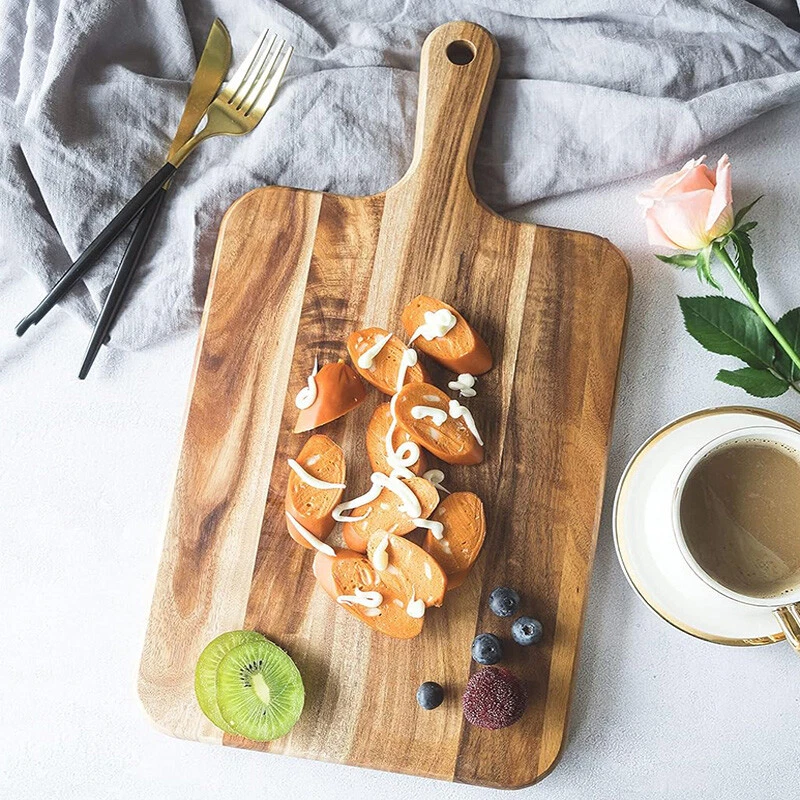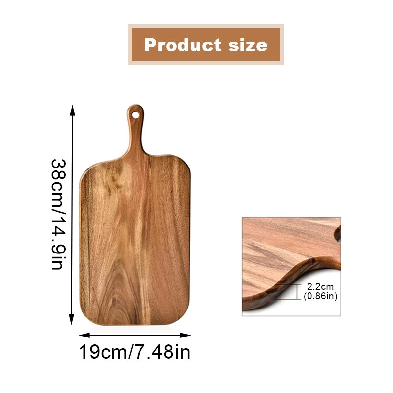 Specifications: Product Name: Wooden Chopping Board Material: Acacia Color: Wood Color Size: 41x12x1.5cm, 38x19x1.5cm Features: • Traditional Wood Material: Crafted from high-quality wood, this cutting board offers a natural and rustic touch to your kitchen decor. • Versatile Use: Suitable for serving cheese, charcuterie, bread, fruits, and more. It's an essential tool in every kitchen. • Rectangular Shape: Its rectangular shape provides ample space for serving various dishes, enhancing your dining experience. • Ergonomic Handle :Equipped with a comfortable handle, this cutting board is easy to hold and maneuver, ensuring a safe and efficient cutting process. • Easy to Clean: The wooden material makes this cutting board easy to clean and maintain, offering convenience and hygiene in your kitchen. Package include: 1 Pcs Wooden Chopping Board Notes: Due to display differences and lighting effects, the actual color of the product may be slightly different from the color shown on the picture. Thanks! Due to manual measurement, please allow a measurement tolerance of 1-2cm. On Dec 24, 2024 at 21:21:25 PST, seller added the following information: