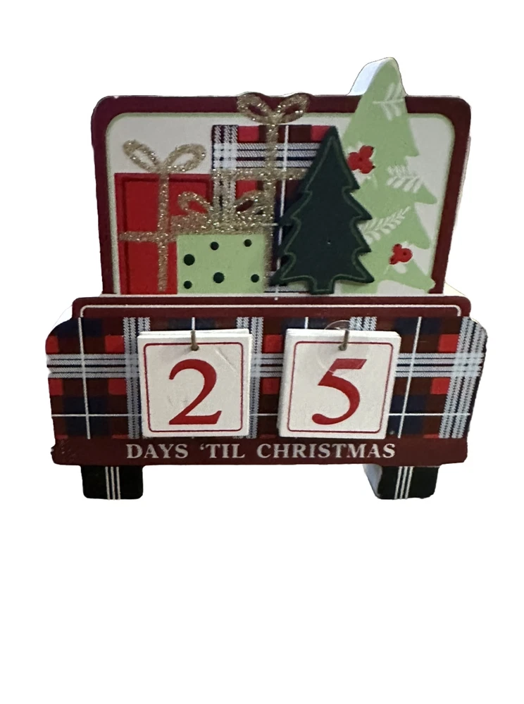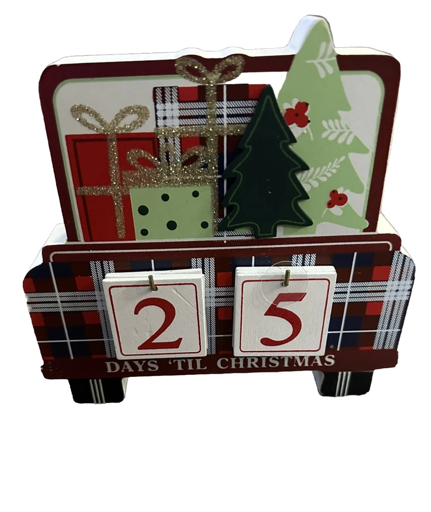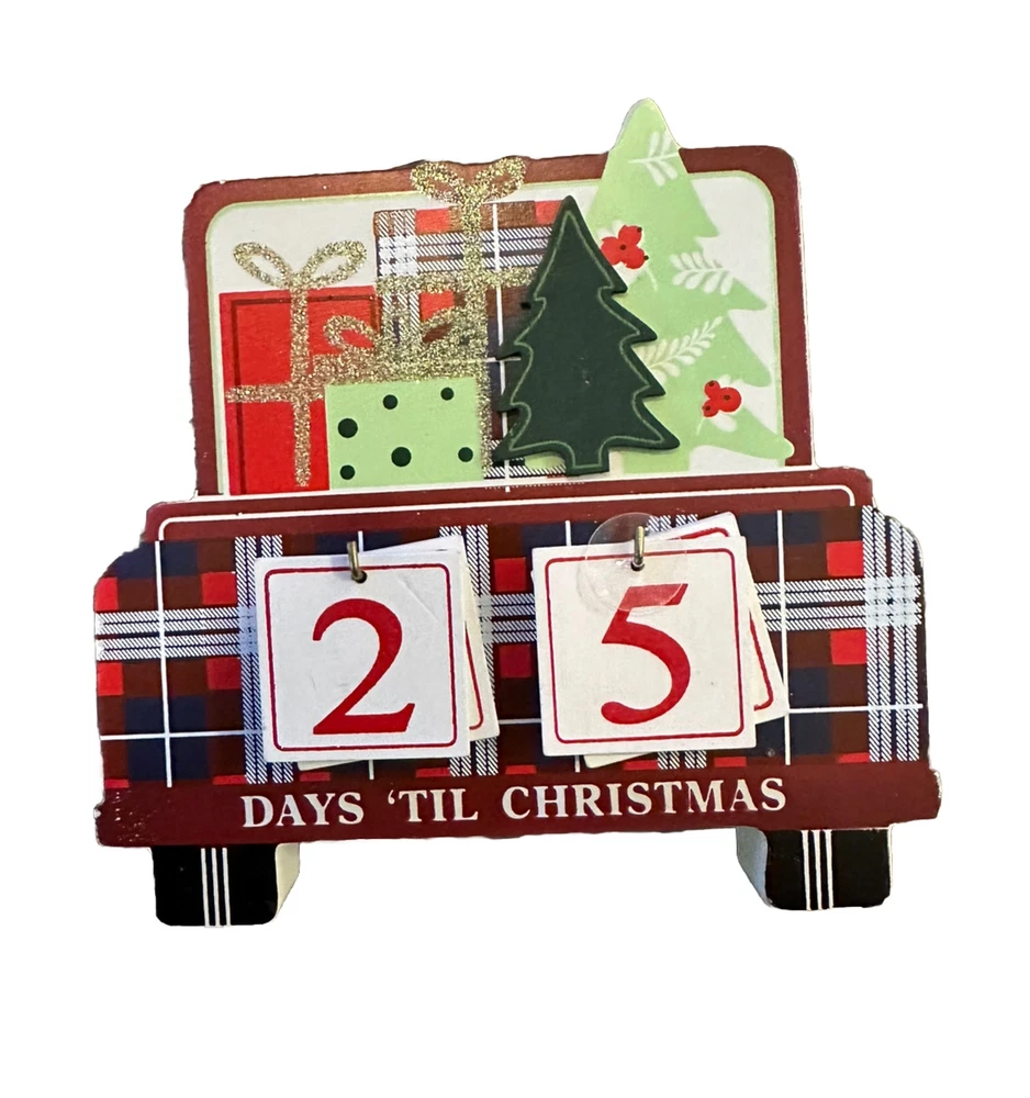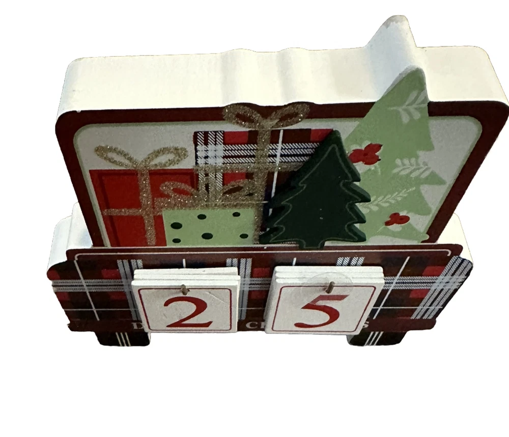 Wooden Christmas Farm Truck Countdown Calendar Tabletop Decor New 3-D 5x6
