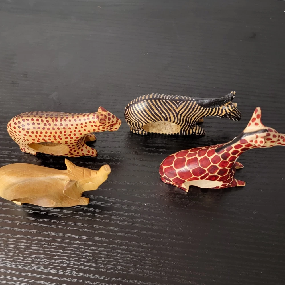 Wooden Napkin Holder Rings Hand Carved African Safari Set of 4