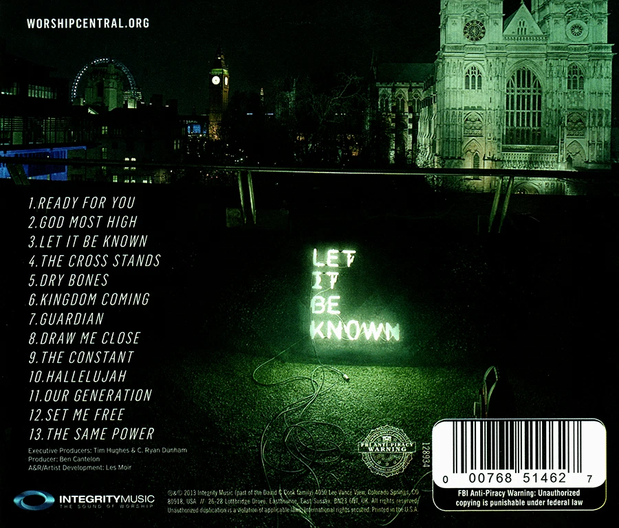 Worship Central - Let It Be Known CD 2013 Integrity Music WORSHIP CENTRAL LET IT BE KNOWN AUDIO CD BRAND NEW FACTORY SEALED 51462 UPC | 000768514627 2013 TRACK LISTING 01. Ready For You 02. God Most High 03. Let It Be Known 04. The Cross Stands 05. Dry Bones 06. Kingdom Coming 07. Guardian 08. Draw Me Close 09. The Constant 10. Hallelujah 11. Our Generation 12. Set Me Free 13. The Same Power WorshipCentral, based out of London England's Holy Trinity Brompton Church, releases their third worship album. Recorded live, this new release highlights passionate and exciting worship, capturing the heart cry of many through worship songs such as "Dry Bones", "Let It Be Known" and the new anthem "Our Generation". The worship leaders included on this new recording are Tim Hughes, Ben Cantelon, Nikki Fletcher, Al Gordon, Luke Hellebronth and Miles Dhillon. SHIPPING TO USA ONLY Buyer Pays Shipping 1st CD $3.99... each additional $1.50 CDs will only be combined with other CDs or DVDs To qualify for the combined discount, all items must be purchased together, paid for with 1 payment, and shipped all together in 1 shipment. Please use the add to cart feature, once you have ordered all your desired items, proceed to checkout to complete your order with the combined total.