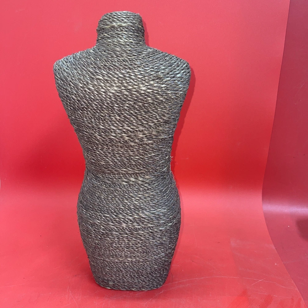 This woven wicker mannequin figurine is a vintage-style half body dress form that stands at 15 inches tall. Its intricate design and attention to detail make it a perfect addition to any retail store or display. The mannequin is made of high-quality wicker material, ensuring durability and longevity. Its half body form type and gender make it ideal for displaying female clothing items. This mannequin is perfect for those who want to add a touch of elegance and sophistication to their store or home decor.