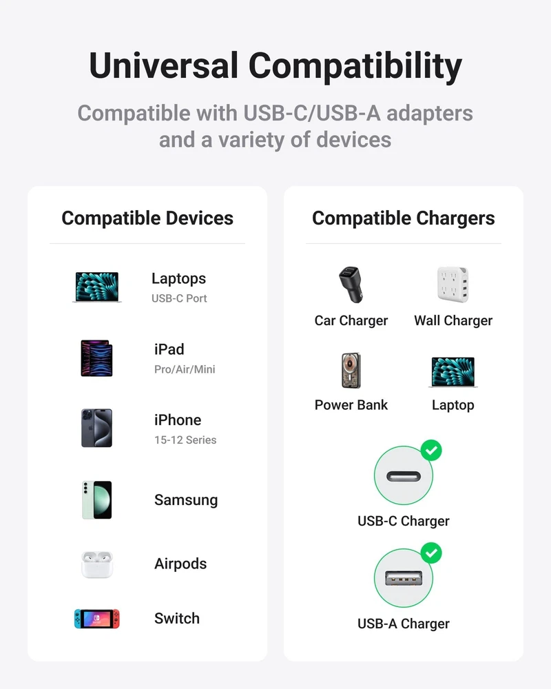 XCOOL USB C Cable, 4-in-1 USB-C Cable (6ft), 100W USB-C Charger Cable with Hook-and-Loop Fastener and Cable Management, USB-C Cable/Fast Charging for MacBook, iPad, iPhone, Samsung, Green Versatile 4-in-1 Design: Simplify your charging setup with our versatile 4-in-1 usb-c cable. Charge and sync your devices without the hassle of switching between multiple cables. Multi-Device Charging Solution: Universal compatibility for all your charging needs with USB-A, USB-C, Fast-charging connectors and power adaptor adaptability. For example, iPhone 14/14 Plus/14 Pro/14 Pro Max/iPhone 13/13 Mini/13 Pro/13 Pro Max/iPhone 12/12 Mini/12 Pro/12 Pro Max/iPhone 11/SE Series; iPad Pro/Air/Mini; MacBook Pro 14"/MacBook Pro 16"/MacBook Air/MacBook Pro 13"; AirPods Series; Apple Watch Series; Galaxy S22/S22+/S22 Ultra/S21/S21+/S21 Ultra/S20/Note20; Switch, etc. 100W USB-C Fast Charging Cable: Power up your MacBook Pro 2021ʺ from 0% to 50% in just 30 minutes—that’s 42% faster than with a 60W charger and cable. (Charger not included). Built to Last USB-C Cable: Combined with zinc alloy and nylon braided for a 100,000-bend lifespan, the tough usb-c cable is durable both inside and out. Whether you need to wrap it around your device or tuck it away neatly, our resilient and reliable usb-c cable can handle it all. Charge Without Taking Case off: Our intentional 2mm connector extension design enables easy charging without removing your case and protects both USB-C and Fast-charging connectors. High-Speed Data Transfers: Transfer movies, music, or more in seconds with 480 Mbps transfer speeds. Versatile 4-in-1 Design: Simplify your charging setup with our versatile 4-in-1 usb-c cable. Charge and sync your devices without the hassle of switching between multiple cables. Multi-Device Charging Solution: Universal compatibility for all your charging needs with USB-A, USB-C, Fast-charging connectors and power adaptor adaptability. For example, iPhone 14/14 Plus/14 Pro/14 Pro Max/iPhone 13/13 Mini/13 Pro/13 Pro Max/iPhone 12/12 Mini/12 Pro/12 Pro Max/iPhone 11/SE Series; iPad Pro/Air/Mini; MacBook Pro 14"/MacBook Pro 16"/MacBook Air/MacBook Pro 13"; AirPods Series; Apple Watch Series; Galaxy S22/S22+/S22 Ultra/S21/S21+/S21 Ultra/S20/Note20; Switch, etc. 100W USB-C Fast Charging Cable: Power up your MacBook Pro 2021ʺ from 0% to 50% in just 30 minutes—that’s 42% faster than with a 60W charger and cable. (Charger not included). Built to Last USB-C Cable: Combined with zinc alloy and nylon braided for a 100,000-bend lifespan, the tough usb-c cable is durable both inside and out. Whether you need to wrap it around your device or tuck it away neatly, our resilient and reliable usb-c cable can handle it all. Charge Without Taking Case off: Our intentional 2mm connector extension design enables easy charging without removing your case and protects both USB-C and Fast-charging connectors. High-Speed Data Transfers: Transfer movies, music, or more in seconds with 480 Mbps transfer speeds. Shipping from the USA All of our products are shipped from the USA, ensuring quick delivery to your destination. Payment We offer the following payment methods: PayPal, credit card, bank transfer, and eBay's secure payment system. Free Shipping & Free Returns Shipping within the USA is FREE. Additionally, any return is absolutely free for you. Risk-Free Purchase You have the option to return an item within 30 days without any justification. We cover the return shipping costs! Fast Shipping We ship immediately upon receipt of payment. Generally, the package is delivered within 2-3 days in the USA. If it takes longer, we will contact you. Quality and Costs Made in Europe, USA, China No customs fees or additional charges Total satisfaction guarantee Invoice with declared VAT available upon request in .pdf format Feedback Your feedback is very important to us. After you pay for your purchase, you will automatically receive positive feedback from us.
