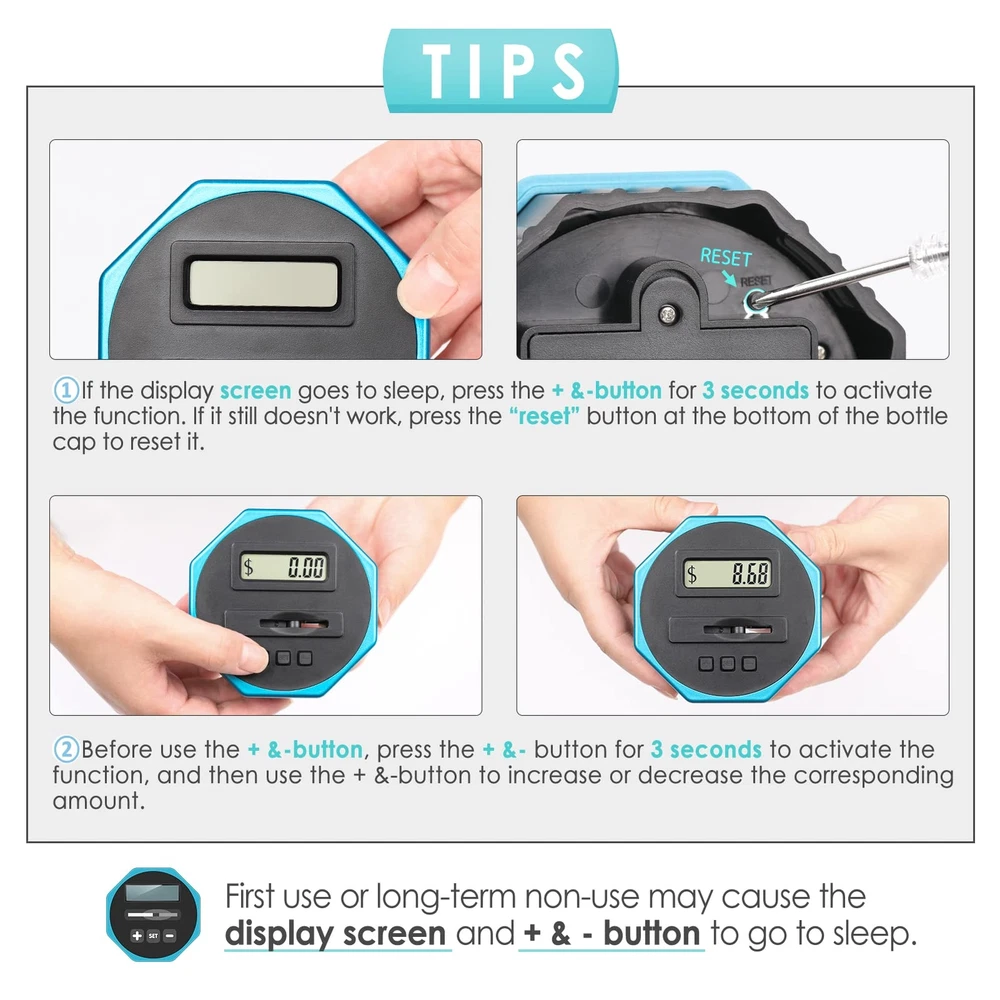 Designed For All US Coins: X-Large capacity up to 2.4L, digital counting money jar can storage 2000+ coins. Piggy bank for adults/kids, accepts all US coins and is powered by 2 AAA batteries(Not Included). Great coin bank money counting jar for adults kids with saving goals. Keeps Track of Savings: Digital piggy bank can automatically distinguish and calculate coins of all sizes with unique identification technology. Displayed amount adjustable with +&- buttons when you unscrew the lid and put the coins directly in the counting coin jar. Know The Amount At Any Time: Coin counter bank money counting jar with legible LCD screen allows you to see the amount of coins quickly and exactly. The digital coin counter with thickened PET material, much more sturdy than glass/ceramic piggy bank. Great Gift For All Ages: The Kids piggy bank is a nice gift for kids with savings goals. Would be a nice gift for a young person learning about the value of and how to save money. Coin savings bank, also a great addition for adults to manage change and away from the coin mess. FUN WAY TO SAVE CHANGE: Smart and active piggy bank. Very cool and nice, come and get this value coin money bank. You may amazed at how simple yet smart this product is. Get this saving jar, you can also get a small screwdriver which is needed. piggy bank with fun.