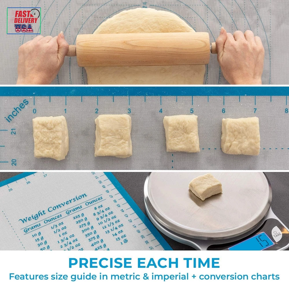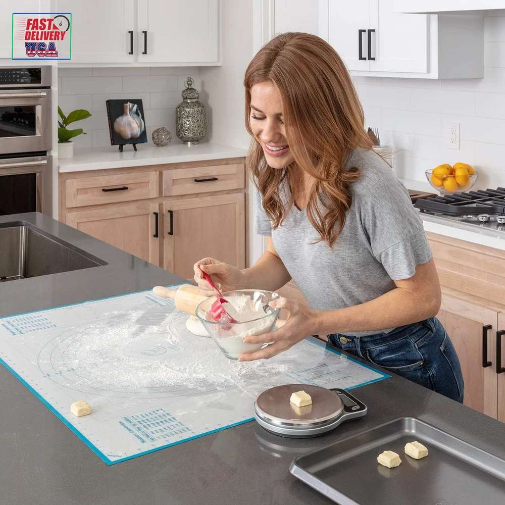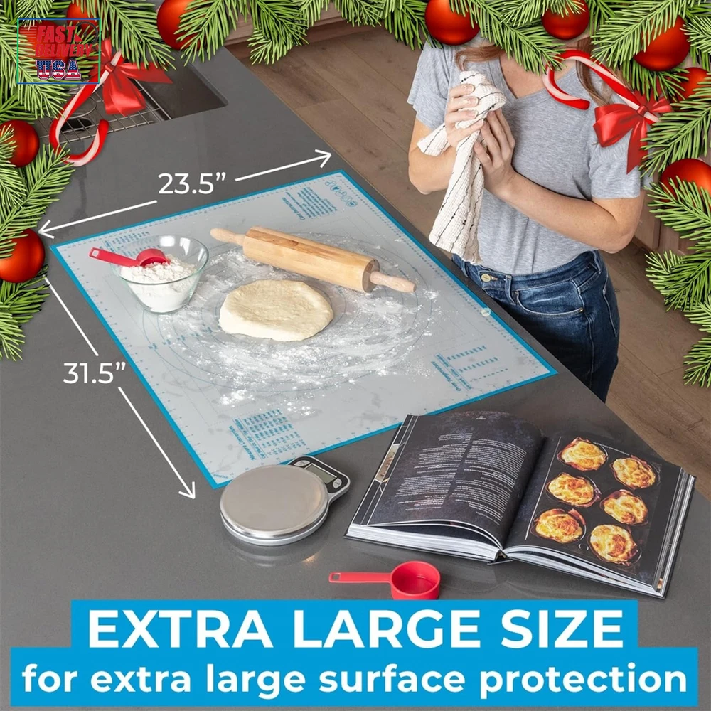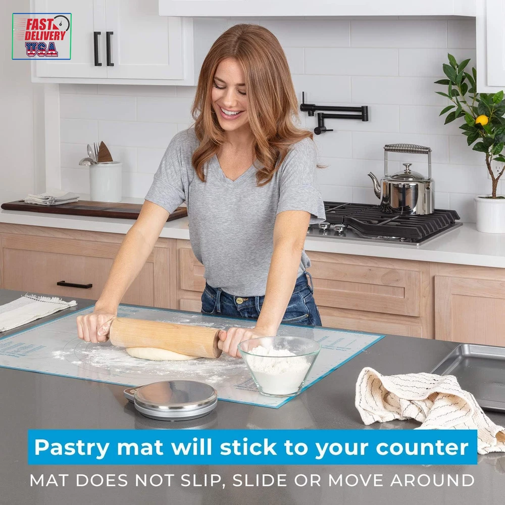 Store New Arrivals Add to Favorite View Feedback Contact XXL SIZE Silicone Pastry Mat for Rolling Dough Non Slip Extra Large - 23,5'' X 31,5'' Dough Mat for Rolling - Rolling Mat for Dough with Measurements - Nonstick Fondant Mat - Large Silicone Baking Mat Description Item Weight 15.2 Ounces Manufacture Year 2021 Color White and Blue Material Silicone Country of Origin China Is Dishwasher Safe Yes Global Trade Identification Number 04260532640136 Shape Rectangular Size 31.5"L x 23.5"W Material Type Free Bisphenol A Free Product Dimensions 31.5"L x 23.5"W đŻ EXTRA LARGE SIZE WITH CONVERSION CHARTS! Our specially designed extra large baking mat for rolling out dough measures 31,5x23,5 inches which means you have enough space to prepare all kinds of dough. The various markings of measurements in the form of circles, inches, temperature conversation, centimeters & measurement conversion helps reducing the use of a calculator to convert in your recipe. No more eyeballing it, guessing, or making your phone messy! đĄ STICKS TO YOUR COUNTER! Our silicone mat for baking is perfect for rolling out any dough because thanks to its anti-slip material, it will stay in place and stick to the surface. It does not slip, slide or move around. It just sticks like itâs glued down, but lifts easily for removal or repositioning so you can concentrate on rolling out the perfect dough. Makes a great holiday gift for every baking lover! đ CLEAN UP IS A BREEZE! Because our dough rolling mats are super easy to clean & dishwasher safe, youâll be able to clean and wipe remaining food easily off or just put them into the dishwasher. This is great because this means you will save so much time by not having to scrub your dough mat for rolling extra large clean. And with our extra large silicone baking sheet size you keep the mess on the dough board and off your worktop. â NONSTICK & SUPER EASY TO USE! Our silicone rolling mat is made out of 100% Food-Grade Silicone which has a non-stick surface which means that absolutely no dough will stick to the mat. This is great because your dough, pies, crusts, pastries, pizzas, breads & cookies will not stick to the mat. Which means that you donât even need flour anymore - rolling out dough has never been easier. â RISK FREE! Does this come with a warranty? YES! Your purchase of our silicone rolling mats for baking comes with a no question asked 3-Year Extended Warranty. If the product isn't for you we'll refund your purchase. If you need a replacement it's already on the way! If you want no compromise in quality, the KPKitchen silicon fondant mat is exactly what youâre looking for. Product Description Are you too tired of looking for high-quality antislip pastry mats? Not anymore, our exceptionally hygienic and nonstick, anti-slip pastry mat is all you need for baking delicious pastries and more! They stick easily to the kitchen top and wash away really quickly, make baking and rolling out dough easier with our KPKitchen Extra Large Silicone Pastry Mat. Designed with an anti-slip surface, so the pastry mat will stick to your counter Our silicone mat sticks to the surface wherever you place it and will neither slip nor move, it is just perfect for rolling out any dough. It does not slip, slide, or move around - it stays in place. That way you can concentrate on rolling out the perfect dough for your cookies, pies pastries & more, without worrying about a messy kitchen. Rolling out dough has never been easier with our Extra Large Silicone Pastry Mat. What you get? 1 x Extra Large Silicone Pastry Mat Size: XXL-23,5''(W)31,5''(L) Designed with Helpful Conversion Charts Our silicon mat with measurements includes markings in the form of circles, temperature conversion, inches, weight conversions that reduces the use of a calculator to convert the units. There are concentric circles ranging from 6 to 20 inches for measuring your pizza, tarts, and pastry sizes and more. No more eyeballing it, guessing, or making your phone messy! Super Easy to Clean Our pastry mats are crafted with heavy-duty, quality materials that are also dishwasher safe! Once youâre done baking, either just wipe clean or just slip the mats in your dishwasher and youâre good to go! 100% Silicone, Non-stick Surface Our pie mat for rolling dough is made of 100% food-grade silicone with a non-stick surface allowing you to knead your dough without worrying about food sticking to the mat. This means that you donât even need flour anymore - rolling out dough has never been easier. Extra Large Size Ergonomically designed, our dough rolling mat liner measures 31.5 x 23.5 inches letting you have enough space to prepare all kinds of delicacies. Simply fold or roll it up for easy storage. ABOUT US We offer the best prices around on high quality products. Our E-store includes media such as books, movies, music and games while offering electronics, toys, sporting apparel, clothing, tools, general home, garden items and more. SHIPPING We are always working hard to ensure your package arrives as soon as possible. Please understand that some factors like weather, high postal traffic, and the performance of shipping companies are outside of our control. We offer free shipping to the lower 48 states and ship within 2 business days of payment, usually sooner. We do not accept P.O. Boxes. Please provide a physical address. For shipping outside of the continental USA, we only use eBay's Global Shipping Program.The item is shipped to KY and then sent to the rest of the world. International customers are responsible for all duties and taxes. Continue to check out in order to calculate costs for shipping the item to your country. Messages regarding eBay's Global Shipping Program MUST be directed at eBay EXCLUSIVELY. RETURNS We offer a 30-Day Return Policy on items which you are not completely satisfied with. You have the option for a full-refund or an exchange of the item. No returns are available on items shipped outside of
