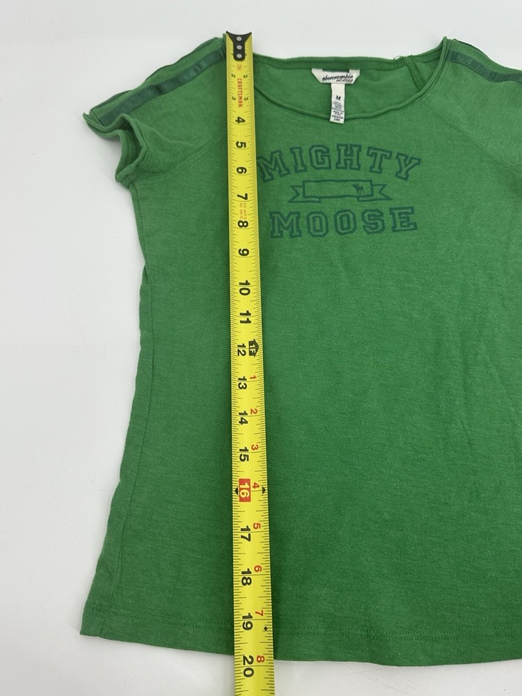Y2K Abercrombie and Fitch Green Mighty Moose Baby Tee Size Medium. Please note measurements. This is very tiny. I would say fits more like an XS. Smoke free home! 1