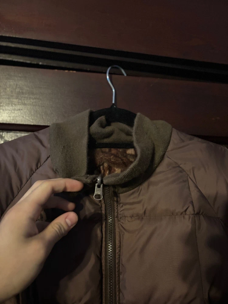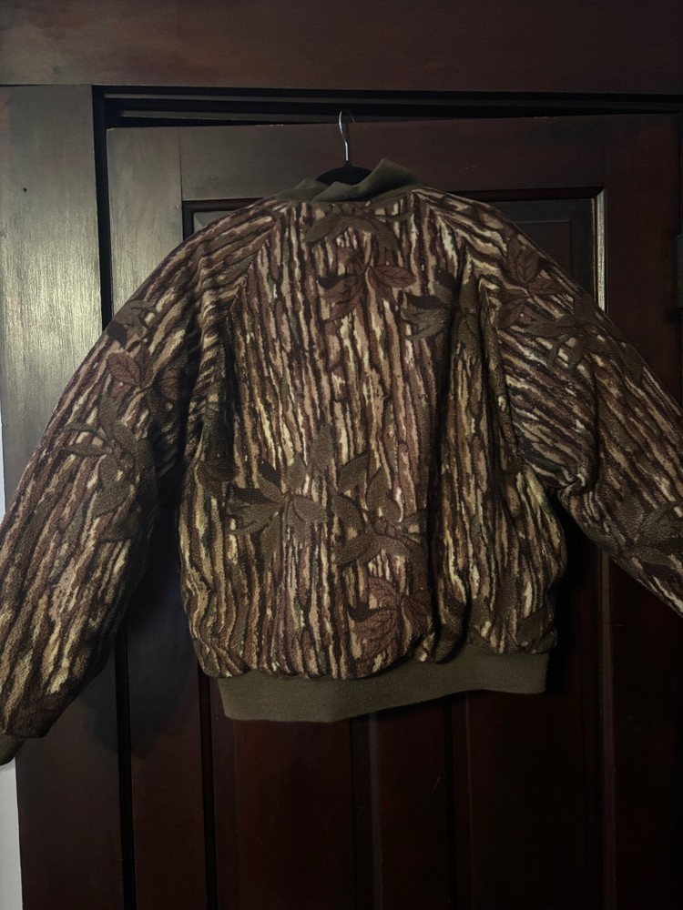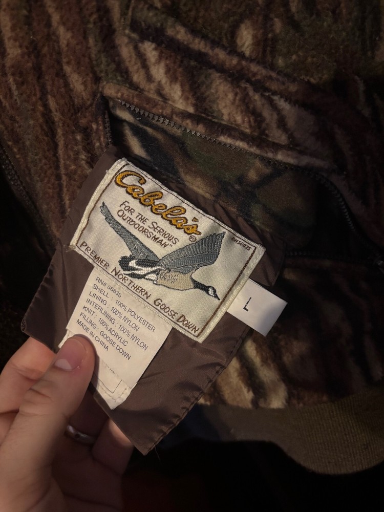 The 90s/Y2K Cabela's Reversible Fleece Down Jacket is a stylish and functional outerwear piece designed for men. Made with polyester outer shell material and lined with cozy polyester fleece, this jacket provides warmth and comfort. The reversible feature adds versatility to the brown color, allowing for different style options. The down insulation material ensures added insulation against the cold, making it a practical choice for outdoor activities or everyday wear. This vintage-inspired puffer jacket from Cabela's is a must-have for those looking for a unique and practical addition to their wardrobe.