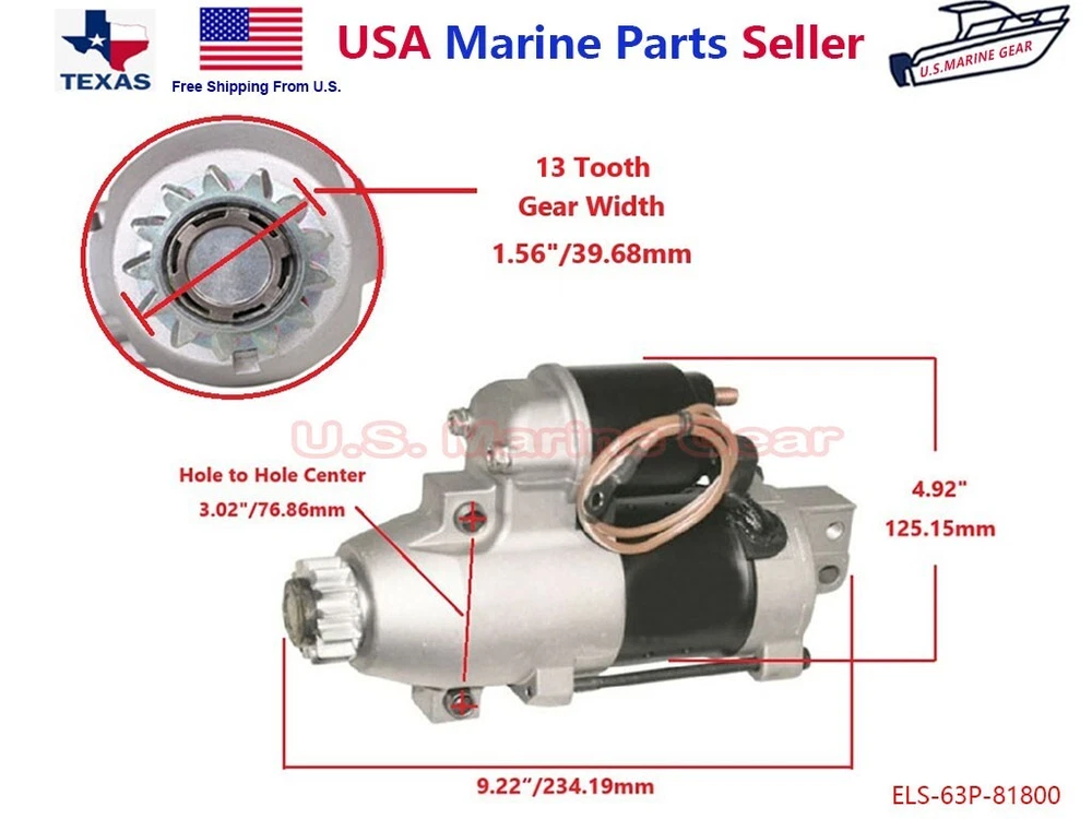 Brand New Premium Quality Starter Motor Premium Quality for Stability, Durability and Longer Service Life. Easy Installation and Direct Replacement with Upgraded Material and Quality. Replace Parts Number: Yamaha 63P-81800-00 6BR-81800-00 6BR-81800-01 6BR-81800-02 API MARINE: MOT5021 ARCO MARINE: 3433 ARROWHEAD: SHI0122 ARROWHEAD (OEM): S114-867B ARROWHEAD (OEM) (OLD): S114-867A HITACHI: S114-867, S114-867A, S114-867B, S114-867BN LESTER: 18442 Compatible with: Yamaha F LF 150 225 250 HP Please verify OEM Parts Number & Listing Pictures before purchase. ******************************************************************************************************** U.S. Seller: We are U.S. supplier and ship all orders directly from local office in Houston Area, Texas Shipping: Order will be processed within 1-2 business day once payment complete successfully. (Monday - Friday,excluding holiday and weekend). Please correct the shipping address to avoid package returned, delay and lost. Local pickup available. Term of Sale: Please read the item description and check the pictures carefully before purchasing. Please contact us before any return, exchange or refund is required. Any direct return of purchased items will not be processed. Returns are acceptable if buyer purchased this by mistake and item still in brand new condition for reselling with 30 days after delivery. It is the buyer's responsibility for any return shipping cost. Restocking fee may apply.
