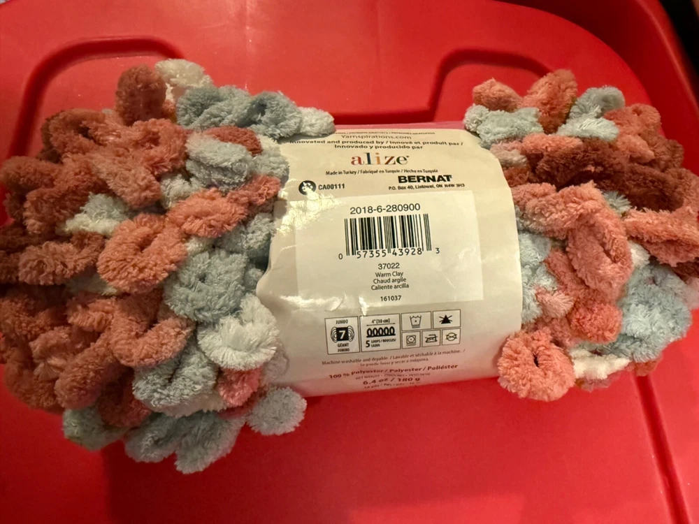 1 Skein of Yarnspirations Bernat Alize Blanket EZ Yarn, Color Warm Clay. From the Yarnspirations website: Time to get crafty with Bernat Alize Blanket-EZ! This yarn features unique preformed loops. With no needles or hooks required, Blanket-EZ projects are completed faster and easier than traditional knitting.