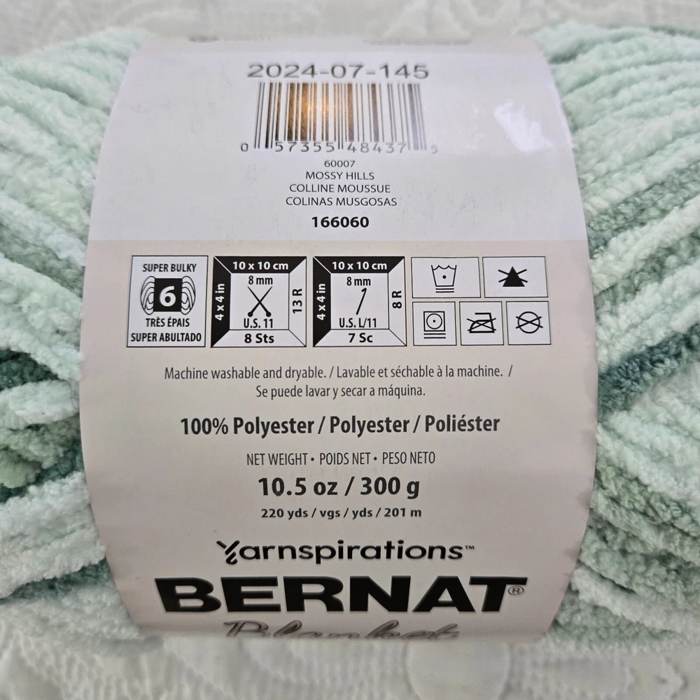 Indulge in the cozy comfort of Yarnspirations Bernat Blanket Yarn, with its rich Mossy Hills tie-dye-ish hue that adds a touch of natural elegance to any project. Crafted from premium polyester, this super bulky yarn is designed to create warm and inviting blankets, throws, and other home decor items. With a weight of 6, it is perfect for creating thick, snuggly accessories like gloves, mittens, Childrens hats and Beanies, scarves or for adding texture to your crochet and knitting projects. Suitable for a variety of craft lovers and hobbyists, this yarn is a versatile choice for anyone looking to create comforting and stylish pieces with ease. Thanks for looking!