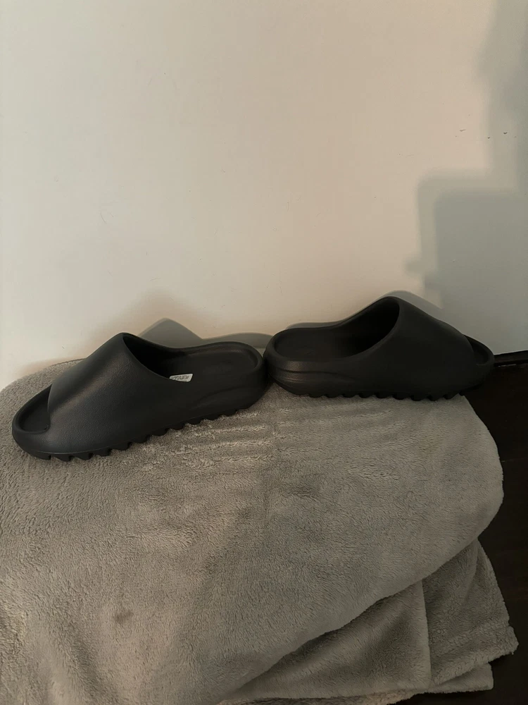 Men's Yeezy Slides Onyx Color Size 10 Brand new in box never worn since they were the wrong size I will ship same day just text me for any extra information