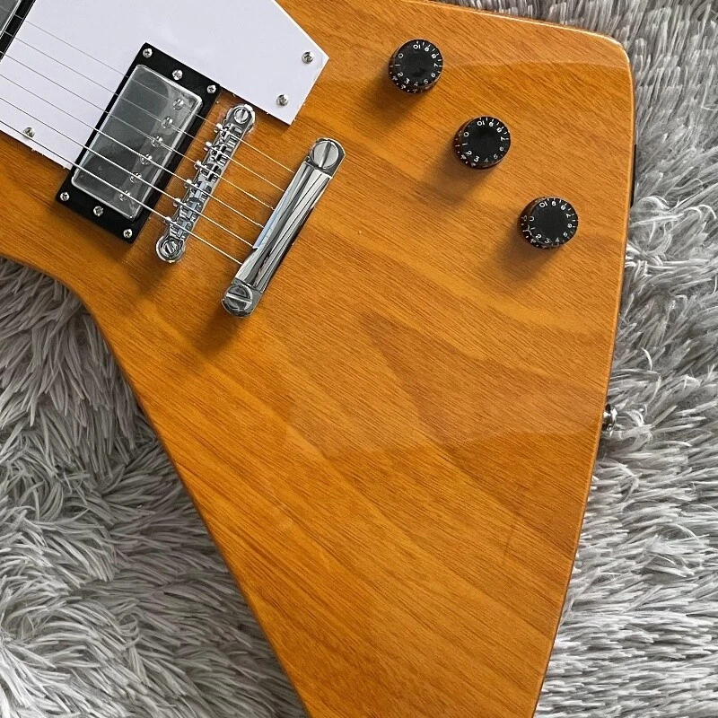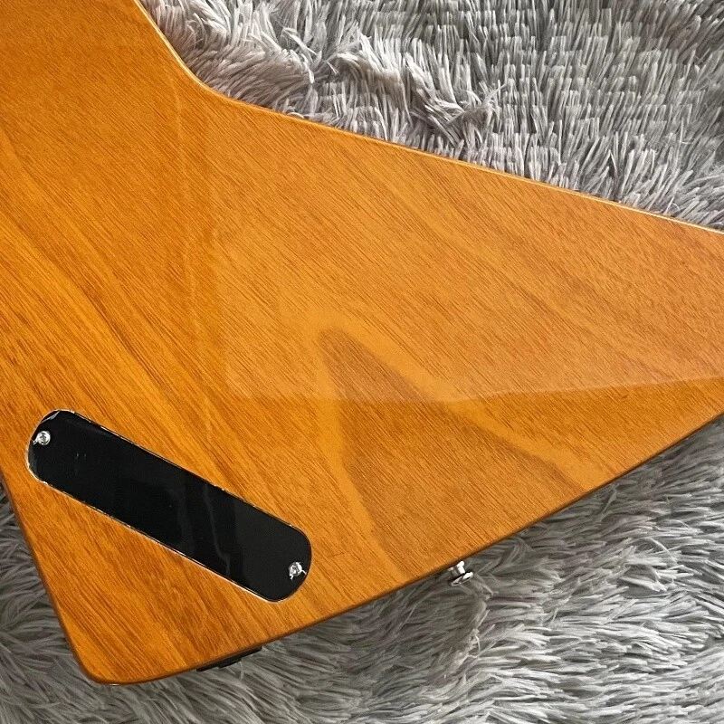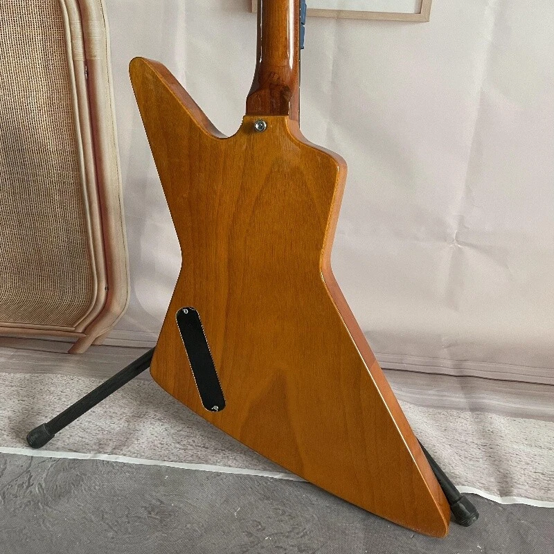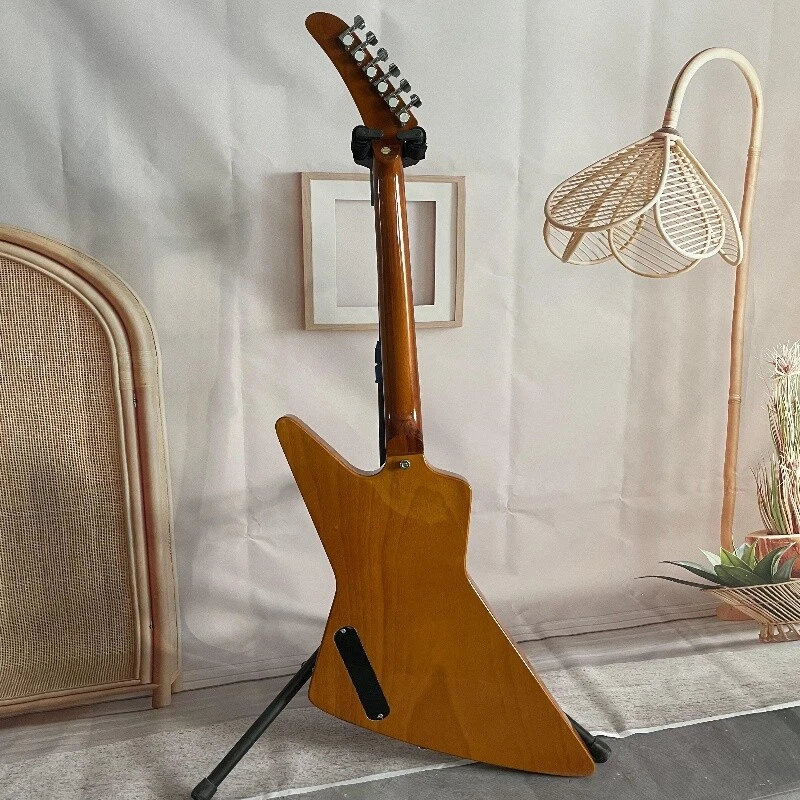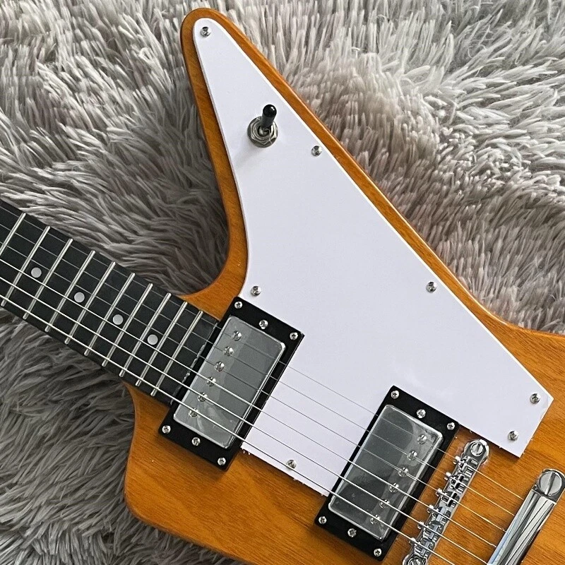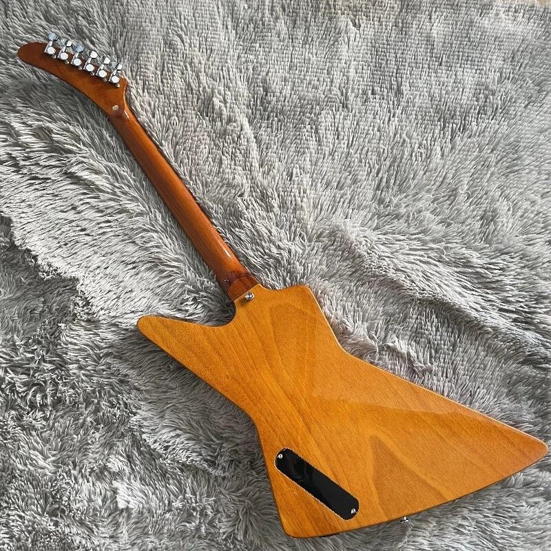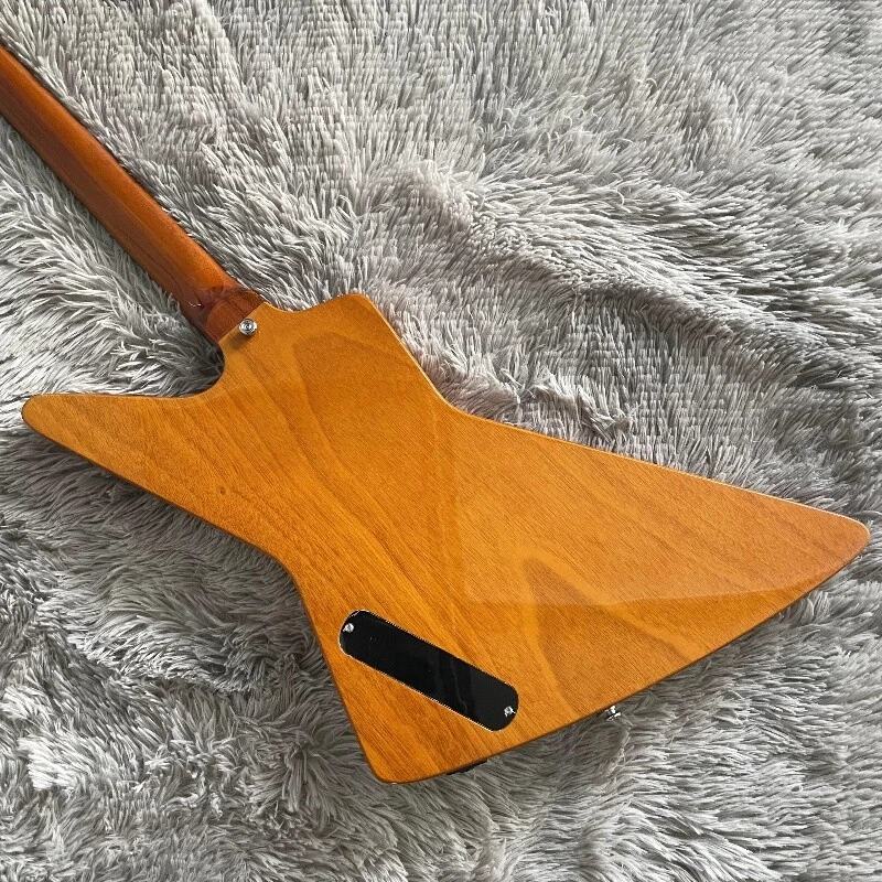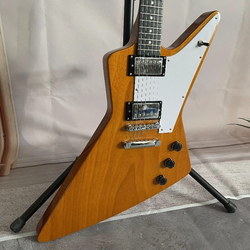 Yellow Explorer 70s Electric Guitar HH Pickups White Pick Guard Mahogany Body Body:mahogany Neck:mahogany Fingerboard:black Joint:Bolt on Pickups:2 humbuckers Electronic:1 Volume 2 Tone Bridge:T-O-M Nut width:43 mm ABOUT THE PICTURES The pictures are taken in our factories by ourselves. Every guitar cannot be the same in 100%, the pictures of the guitar that you see is just one of them. Head stocks are not pictured per our policy.If you want some details about the guitar, please contact me. OUR GUARANTEE We test every guitar is in good condition before it is shipped out. When you receive the guitar, if you meet some problems like readjustment the strings or you are not happy with our guitar, please contact me. PACKING We will place a foam box and foam filler to prevent damage to the guitar, but if the guitar is still broken in transit, please contact me. RETURN POLICY If the item you received is broken or defective, please contact me immediately and return it within 3 days after you received it with the original or approved packaging. After we received it, we will give you a Full-Refund or Exchange. Buyers are responsible for return shopping costs. If you want to replace it, we will send a new one to you and then forward a shipping label. For missing or replacement parts(from the original order), we will ship them to you. If you have any questions about a return or exchange,please contact me. FEEDBACK The new shop is not easy to operate, if you like our guitar, truly hope you can leave a good comment. If you are not satisfied, we will do our best to solve the problem. Thank you soooo much!