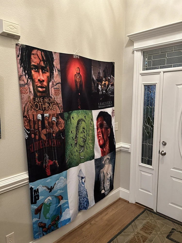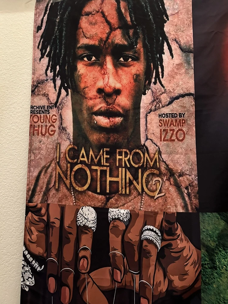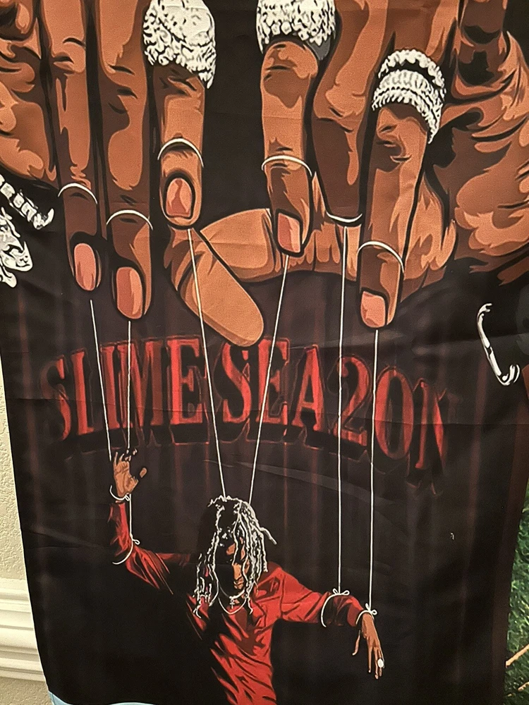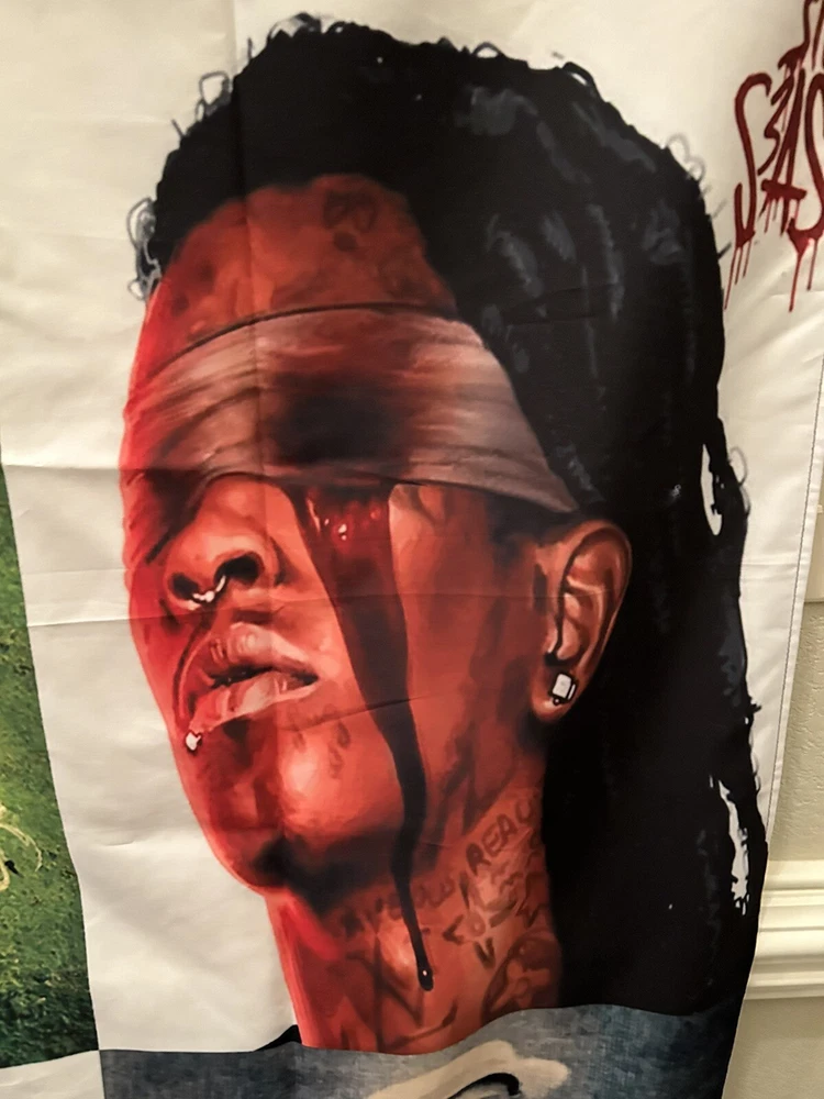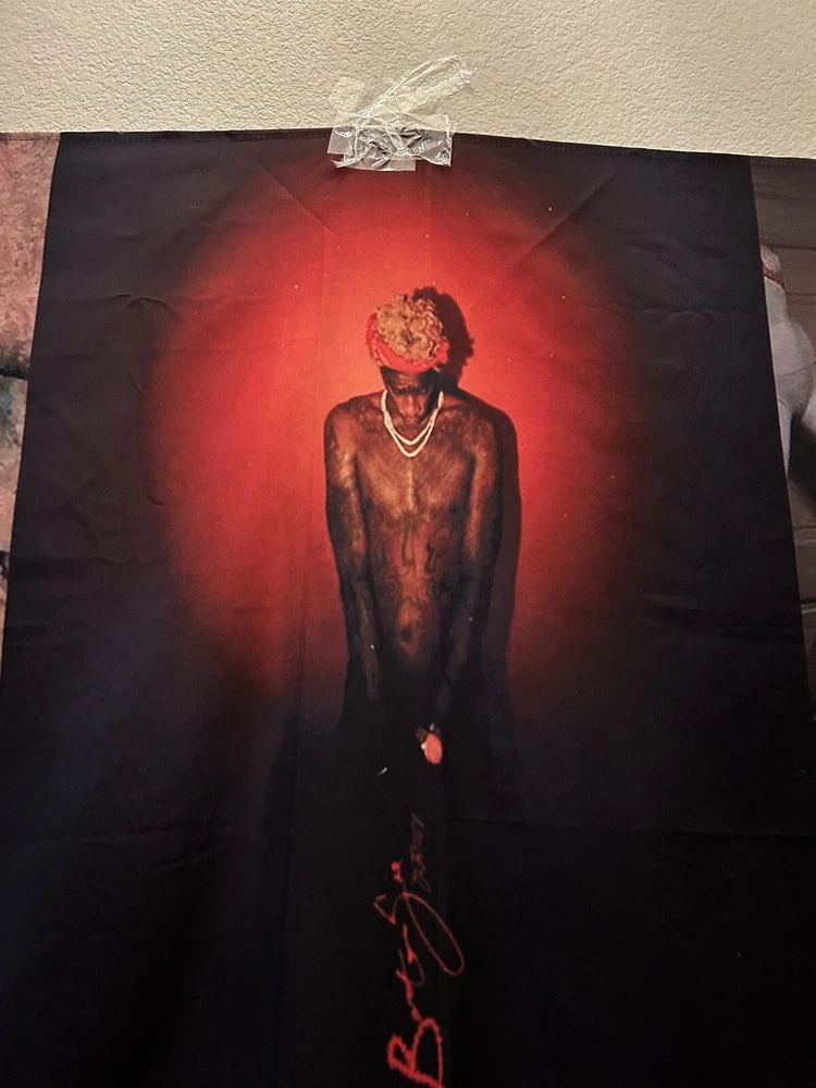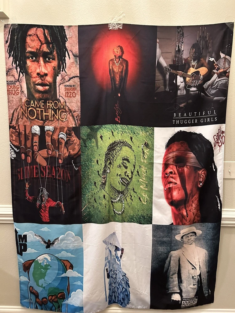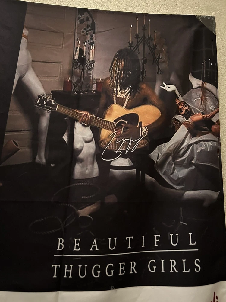 Show off your love for Young Thug with this stunning wall hanging cloth poster. Measuring 58"x78", this beautiful piece features the iconic Thugger Girls and is perfect for any fan of rap and hip hop. Made from high-quality fabric, this poster is a must-have for any collector of music memorabilia. Whether you're a fan of Young Thug or simply love the genre of rap and hip hop, this poster is sure to be a standout piece in your collection. Hang it in your home or office to show off your passion for music.