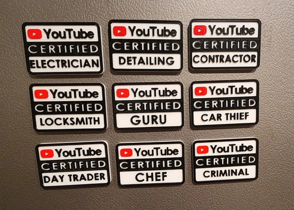 Introducing the Youtube Certified Contractor Magnet! This magnet is a salute to the ambitious souls who’ve transformed their spaces and tackled home improvement projects with the guidance and inspiration from online vast library of tutorials. From drywall repairs to full-scale renovations, this magnet celebrates your journey from novice to a skilled, self-made contractor. Dimensions: 3.00" x 2.00" Striking an ideal balance between visibility and subtlety, perfect for any metallic surface in your workshop, office, or on your refrigerator. Strong Magnetic Adhesion: Engineered with a robust magnet to ensure it securely adheres to any ferrous material, making it a great accessory for your toolbox, filing cabinet, or work van. Superior Durability: Constructed with a durable metal base and featuring a high-quality, full-color print with a glossy finish, this magnet is designed to withstand the rigors of a construction environment while retaining its professional appearance. Easy Maintenance: Simply wiping it with a damp cloth will keep your magnet looking sharp and new, ready to display your pride in your DIY accomplishments. The Certified Contractor magnet isn’t just a decorative item; it’s a badge of honor for those who have dared to dream and build with their own hands, leveraging online tutorials to bring those dreams to fruition. It acknowledges the hard work, creativity, and determination it takes to become proficient in the diverse skills of contracting. Whether you’re gifting it to a friend who’s always in the middle of a home project or claiming it for yourself as a symbol of your achievements, this magnet is a fun and meaningful way to recognize the effort and learning that goes into becoming a proficient DIY contractor. It’s perfect for anyone who has ever turned to online tutorials to learn how to frame a wall, install flooring, or any other task that transforms a house into a home.