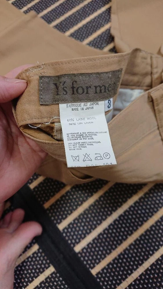 Material: Linen, Wool gtin13: Does not apply Pattern: NA Vintage: No Pocket Type: NA Leg Style: Straight Size Type: Regular Size: 3 Country/Region of Manufacture: Japan Fabric Type: NA Garment Care: NA Model: NA Color: Beige Handmade: No Theme: NA UPC: Does not apply Brand: Yohji Yamamoto Department: Men Product Line: NA Occasion: Business, Casual, Travel Fit: Regular Rise: NA MPN: NA Accents: NA Season: Fall, Spring, Winter Style: Chino Personalize: No Closure: Button Inseam: 31.4 in Type: Pants Waist Size: 30.7 in Features: Pockets