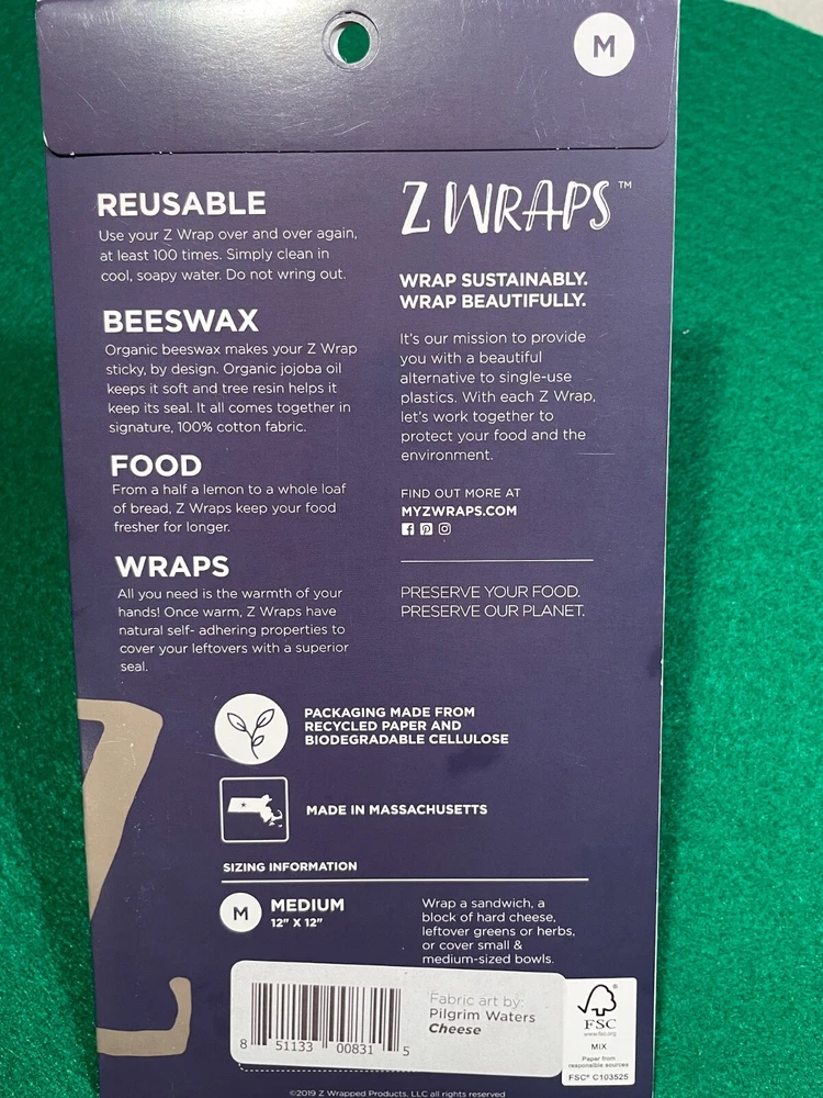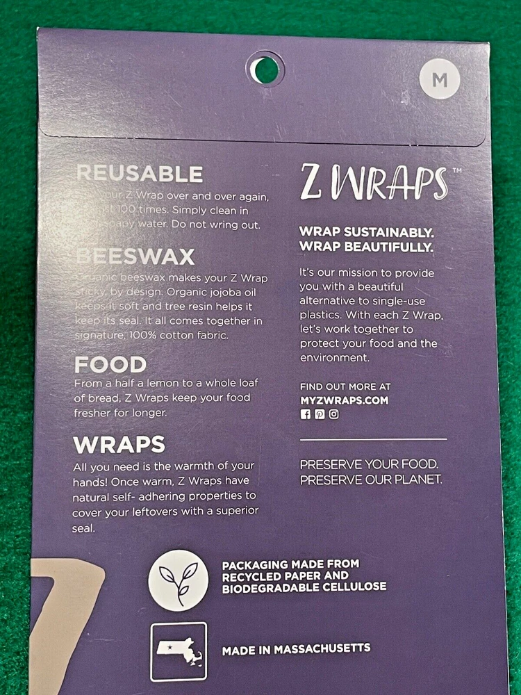 Here is your opportunity to own these reusable beeswax container coverings over and over again! These are not "throw-away" covers but meant to be used again and again! This is a great way to cover your left overs multiple times with these unique beeswax cover wraps. They have a natural self-adhering properties to cover your leftovers with a superior seal. Just the warmth of your hands allows these wraps to mold to any shape dish for refrigerated storage. This listing contains three individually wrapped packages sized 12" x 12" (medium size) to wrap many items such as sandwiches, vegetables, pizza slices, etc. Better than using standard plastic wrap. And they are used over and over again, up to 100 times. Generally you are able to cover most small and medium sized bowls. They are reusable and you simply clean in cool, soapy water and do not wring out. Think about gifting one to a friend, family member or neighbor! These wraps are from a pet free and smoke free home and will ship the day payment is received or the next business day via USPS. They are offered without warranty and no returns or refunds please.