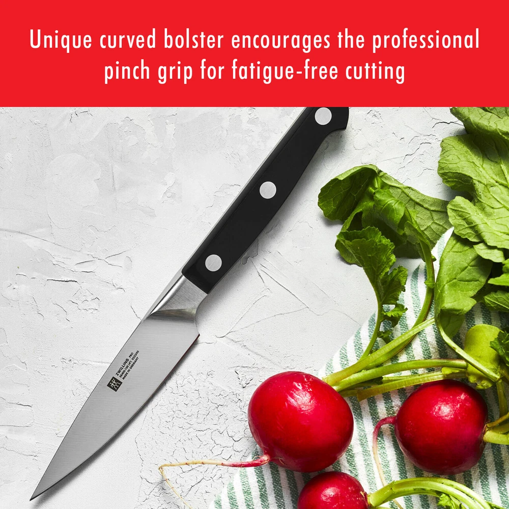 High-quality kitchen knife crafted in Germany to deliver superior kitchen cutting performance FRIODUR® ice-hardened blade will not rust and is hand-honed to hold a durable and extremely sharp cutting edge This German knife features a precision-honed blade and laser-controlled edge which ensures an ideal cutting angle for sharpness and durability Full tang SIGMAFORGE blade is forged from a single piece of Zwilling's Special Formula high carbon no stain steel Innovative curved bolster promotes proper handling for precise control and safety Ergonomic and highly durable triple-riveted polymer handle on the paring knife provides a comfortable grip for easy handling. About Us Shipping Returns Contact Us FAQs ZWILLING Pro 4-Inch Paring Knife, Kitchen Knife, Made in Germany ZWILLING Pro 4-Inch Paring Knife, Kitchen Knife, Made in Germany Item # Item Description The Zwilling Pro Paring Knife is manufactured in Germany and features an innovative curved bolster that helps you cut with enhanced precision, safety and comfort. Full tang and handle are triple-riveted for superb stability. High-quality kitchen knife crafted in Germany to deliver superior kitchen cutting performance FRIODUR® ice-hardened blade will not rust and is hand-honed to hold a durable and extremely sharp cutting edge This German knife features a precision-honed blade and laser-controlled edge which ensures an ideal cutting angle for sharpness and durability Full tang SIGMAFORGE blade is forged from a single piece of Zwilling's Special Formula high carbon no stain steel Innovative curved bolster promotes proper handling for precise control and safety Ergonomic and highly durable triple-riveted polymer handle on the paring knife provides a comfortable grip for easy handling. Shipping & Sales Tax Shipping & Sales Tax Returns Contact Us Payment About Us Shipping & Sales Tax Shipping charges to the contiguous United States: Standard shipping is FREE on orders over $25 and $5.99 on orders under $25 Standard shipping takes 1 to 6 (1 day handling time + 1-5 days transit time) business days from the date your order is entered into our system. Expedited shipping is $14.99 (add $9.99 for each additional item) Expedited shipping takes 1 to 4 (1 day handling time + 1-3 days transit time) business days from the date your order is entered into our system One-day shipping is $39.99 (add $39.99 for each additional item) One Day shipping takes 1 to 2 (1 day handling time + 1 day of transit time) business days from the date your order is entered into our system Shipping Promotions: Spend $25 and standard shipping is FREE. Please be aware that in order for shipping promotions to take place, all items must be purchased using eBay "Add to Cart" button. Alaska & Hawaii Economy shipping is $14.99 per item Economy shipping takes 1 to 12 (1 day handling time + 1-11 days transit time) business days from 4:00 pm EST on the date your order is entered into our system. Standard shipping is $19.99 per item Standard shipping takes 1 to 6 (1 day handling time + 1-5 days transit time) business days from 4:00 pm EST on the date your order is entered into our system. Expedited shipping is $29.99 per item Expedited shipping takes 1 to 4 (1 day handling time + 1-3 days transit time) business days from 4:00 pm EST on the date your order is entered into our system One-day shipping is $49.99 per item One Day shipping takes 1 to 2 (1 day handling time + 1 day of transit time) business days from 4:00 pm EST on the date your order is entered into our system P.O. boxes, US Territories, & APO/FPO We cannot ship orders to P.O. boxes, APO/FPO addresses, or US Territories at this time. Sales Tax: We are required to collect and remit sales tax at the local rate in the following states/jurisdictions. Sales tax will be calculated at check out. CA, CO, DC, FL, GA, IL, KY, MA, MI, MN, NC, NJ, NM, NY, PA, TX, WA Cancellations and Alterations: Unfortunately, we cannot cancel or alter orders once they have been placed. Returns Returns We hope you love everything you order from us. Should you be less than happy with anything else you've ordered, please return it within 60 days of receiving the item. Please note items must be in new and unused condition in the original manufacturer packaging. You can return items by initiating a return on your eBay transactions where you will click "Return this item." You will then select the reason for the return followed by printing out the return label and shipping the item back. Once we receive the returned item, you will receive a return confirmation via email. Please allow 3-5 business days for a credit to reflect on your initial form of payment. If you have any questions concerns regarding a return please email us by clicking here . Address for returns: Zwilling MC Returns 270 Marble Ave RA#EB400001 Pleasantville, NY 10570 Contact Us Contact Us Feel free to contact us via " Ask Seller a question " and we will respond within 24-48 hours. Any inquiries submitted on non-business days will be responded to by the next business day. Customer Service hours of operation are 9am - 4pm EST, Monday - Friday. Payment Payment We accept PayPal payments during checkout. Immediate payment is also required for all transactions, meaning all items will be paid for at the time of checkout before the sale is finalized. About Us About Us ZWILLING J.A. Henckels is both manufacturer and distributor of premium cutlery and cookware. Our brands represent the best tools you can use in your kitchen ZWILLING J.A. Henckels — Premium German Cutlery Staub — Premium French enameled Cast Iron cookware; ceramics foreign-made to our exacting specifications Maybi — Premium Japanese Cutlery from Seki, Japan Kramer by ZWILLING — Premium Cutlery designed by master bladesmith Bob Kramer, manufactured in Seki, Japan Demeyere — Premium Belgian Stainless Steel Cookware Ballarini — Premium Italian Aluminum Cookware Henckels International — High quality, entry-level cutlery and 