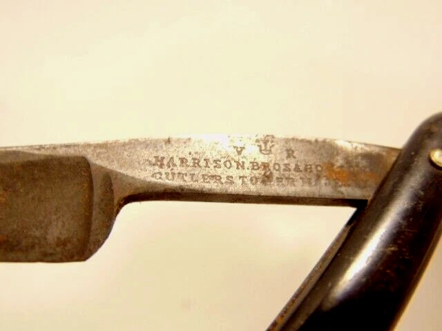 Here is an antique Harrison Bros. & Howson straight razor marked Alpha with a crown emblem on the side of the blade and Cutler to Her Majesty & crown near the rivet. The razor measures about 6 inches long. The blade s small and measures only about 5 1/4 inches long and just 1/2 inches wide. It shows some spots of corrosion, tarnish, dirt and wear from use. Please see the pictures and ask any questions. Thank you for looking. (Inv A24,402)