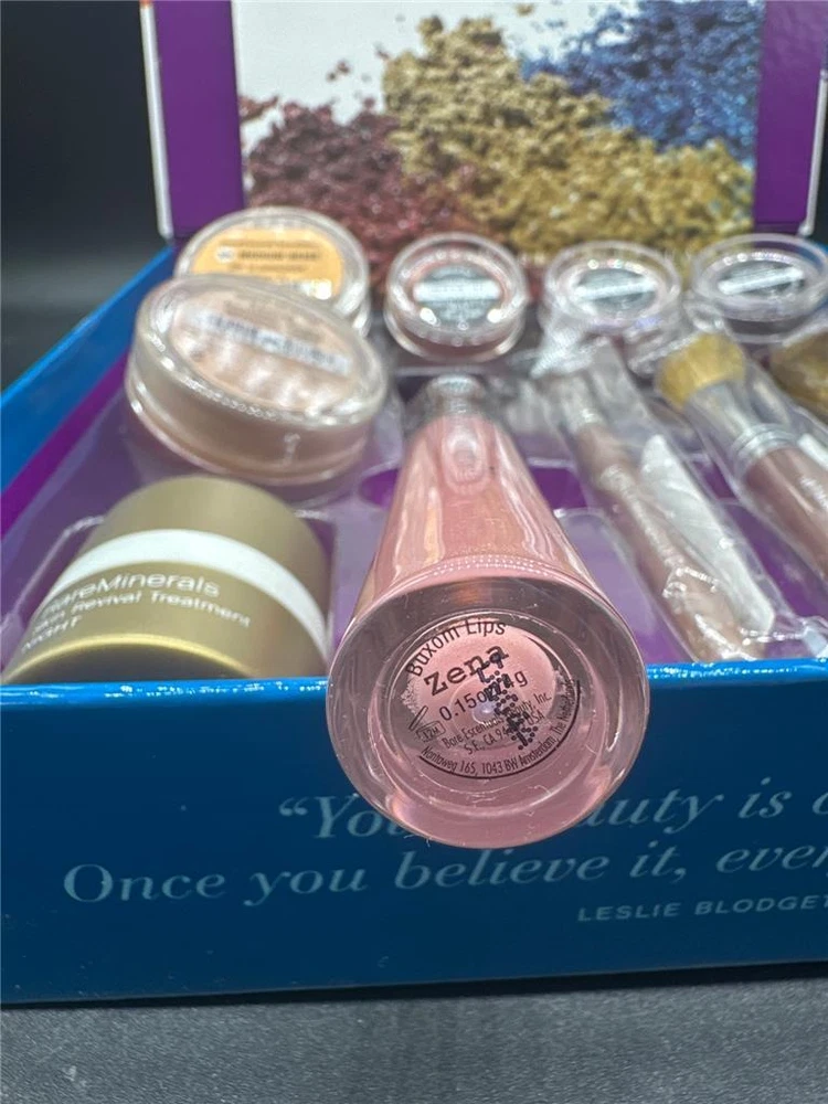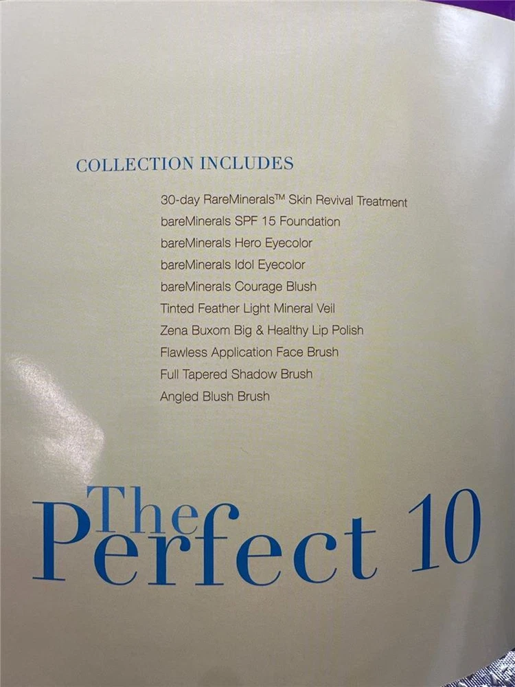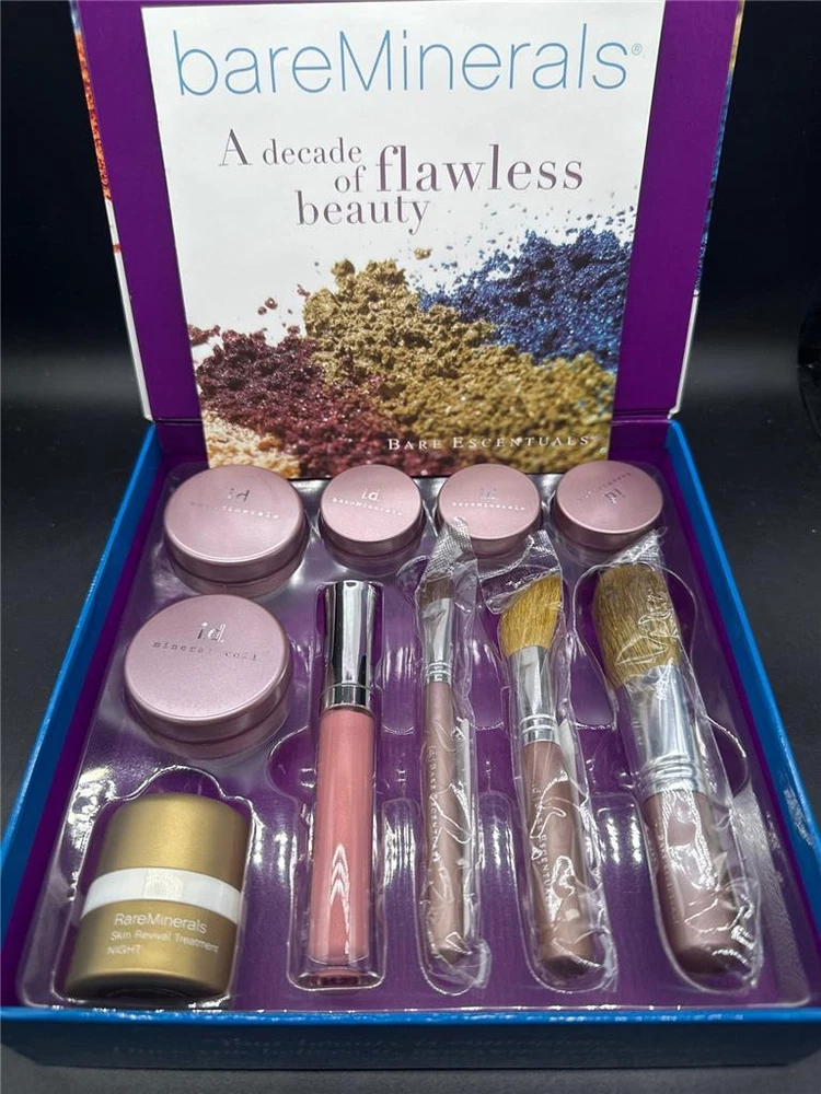 bareMinerals THE PERFECT 10 Gift Set Eyecolor Blush Veil Brushes Foundation Lip bareMinerals THE PERFECT 10 Gift Set Eyecolor Blush Veil Brushes Foundation Lip Click images to enlarge Description FOR YOUR BIDDING CONSIDERATION: bareMinerals The Perfect 10 Gift Set Collection 10 Piece Set NEW and Sealed This gift set included: 30-Day RareMinerals Skin Revival Treatment baremMinerals SPF 15 Foundation bareMinerals Hero Eyecolor bareMinerals Idol Eyecolor bareMinerals Courage Blush Tinted Feather Light Mineral Veil Zena Boxim Big & Healthy Lip Polish Flawless Application Face Brush Full Tapered Shadow Brush Angeled Blush Brush See pictures for sizes of containers. Check out my other listings for more bareMinerals Make Up Sets! I purchase my items from local estates, auctions, warehouse overstock and cannot confirm anything about them or if they come from smoke free/pet free homes. I try my best to represent items to the best of my knowledge. Used items are never as good as NEW. Do not purchase if you are not willing to accept less than perfect. Please read the description thoroughly and review pictures before committing to buy. Thank you! ALASKA - HAWAII - PR - APO - ADDITIONAL CHARGES MAY APPLY SHIPMENTS GO OUT MONDAY-FRIDAY WEEKEND SALES SHIP MONDAY OR TUESDAY Get images that make Supersized seem small. Showcase your items with Auctiva's Listing Templates! THE simple solution for eBay sellers. Track Page Views With Auctiva's Counter