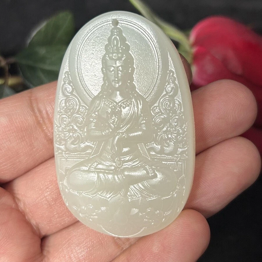 beautiful natural white jade carving buddhism tara Guanyin Bodhisattva pendant item Description: beautiful natural white jade carving buddhism tara Guanyin Bodhisattva pendant item Material: natural white jade item condition: very good Size: 6 cm (H) X 3.7 cm (W) X 0.7cm (D) Welcome to my eBay store, we will provide the best goods and services 1: If you find something you like, happy to order. Don't regret missing it. 2: Some items are sold at the same time as physical stores, please consult before purchasing. 3: if you have any questions. please free contact us,We'll answer your questions in a timely manner. Shipping small package by SpeedPAK DDU Shipping Service Normally it expects 8 to 15 days to get to worldwide destinations. middle and big package by Fedex DHL UPS EMS .... Shipping Service Normally it expects 7 to 10 days to get to worldwide destinations. Payment Delivery details Terms of sales About us Contact us Payment EBay has updated its payment methods payoneer. Delivery details Shipping We will ship your item within 1-2 day after the payment was cleared. small package by SpeedPAK DDU Shipping Service Normally it expects 8 to 15 days to get to worldwide destinations. middle and big package by Fedex DHL UPS EMS .... Shipping Service Normally it expects 7 to 10 days to get to worldwide destinations. Terms of sales Welcome to my eBay store, we will provide the best goods and services 1: If you find something you like, welcome to buy it Don't regret missing it. 2: Some items are sold at the same time as physical stores, please consult before purchasing. We only accept payoneer payment, thank you. 3: if you have any questions. please free contact us,We'll answer your questions in a timely manner. About us Welcome to my eBay store, we will provide the best goods and services 1: If you find something you like, welcome to buy it Don't regret missing it. 2: Some items are sold at the same time as physical stores, please consult before purchasing. We only accept payoneer payment, thank you. 3: if you have any questions. please free contact us,We'll answer your questions in a timely manner. Contact us Welcome to my eBay store, we will provide the best goods and services 1: If you find something you like, welcome to buy it Don't regret missing it. 2: Some items are sold at the same time as physical stores, please consult before purchasing. We only accept payoneer payment, thank you. 3: if you have any questions. please free contact us,We'll answer your questions in a timely manner.