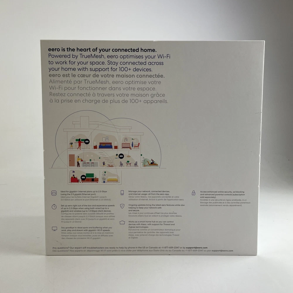 eero Pro 6E Tri-Band Whole Home Mesh Wi-Fi 6E System (S010312) - 3 Pack. Kindly be aware of the details and specifications of the item you are purchasing. Due to Karam Tech Inc. being a small business we are unable to accept returns. Open Box. Item has been inspected. All accessories are included. Please note we will do our best to provide any information and details you may need in regards to the items you are purchasing