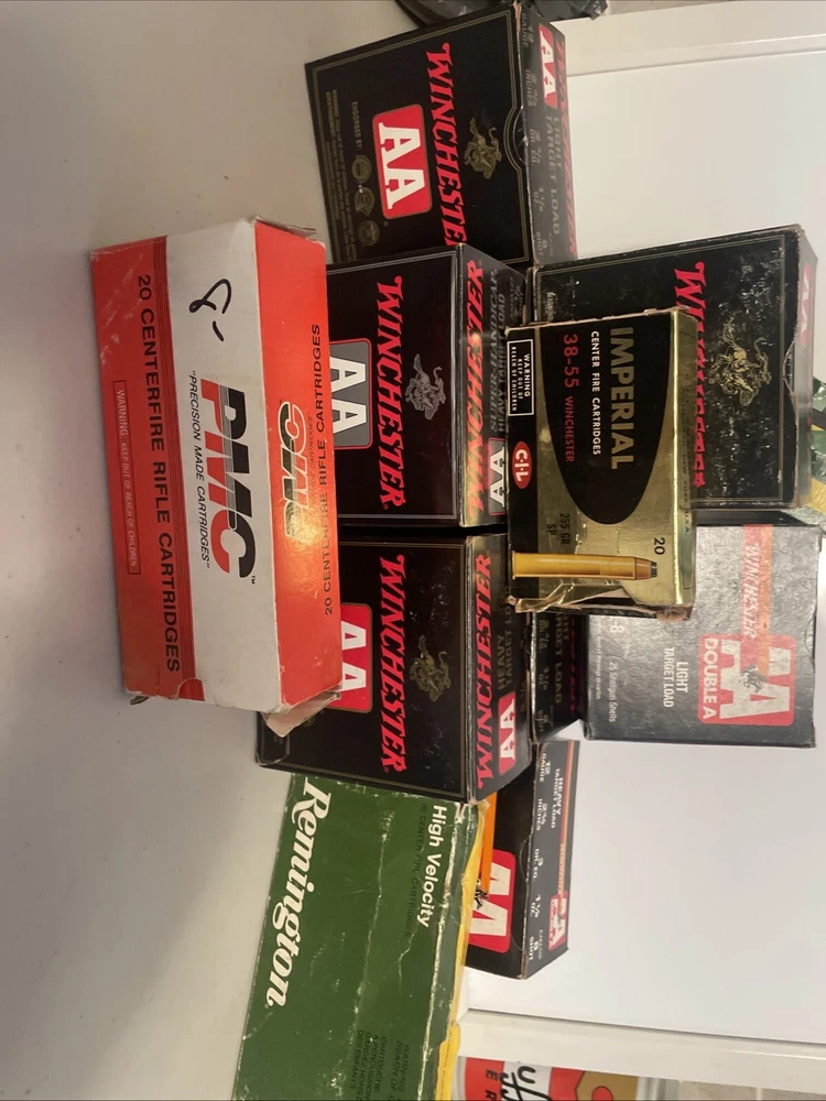Pmc 30/30 - imperial 38-55 - Remington 1 ( 30-06 ) Remington 17 Remington- western 38-55 - Winchester 12 gauge 8 boxes your getting 13 boxes total all are empty