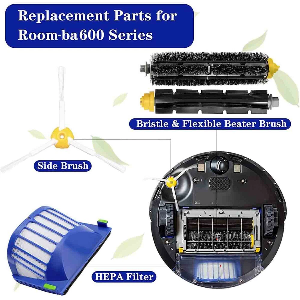 Product Details: 1. compatibility: The replacement accessories kit compatible with iRobot 675 2. Side brush: Please check whether the vacuum side brush hole is the same as our side brush before purchase, please see the details in the picture. 3. Easy to Install & Clean – Free your hands from the complicated replacement steps. No extra tools needed. Just hand wash it in warm water and let it completely air dry. Features: 1. Upgraded 99.98 % Filtering Capabilities – JUST Enjoy fresh air with your love ones at home ! Adopting two-in-one design with High efficiency particulate and double-layer filter to catch the invisible particles, the premium Vacuum HEPA filters can capture floating dust, pet dander and pollen etc to avoid secondary air pollution. 2. Replacement Cycle: To ensure your vacuum works properly and optimally, it is recommend to replace the 500 & 600 Series Replenishment parts every 2-4 months depending on your usage. Package Include: 4x Filter 4x Side Brushes 2x Bristle Brush 2x Beater Brush 2x Brush Cleaning Tool 4x Screws On Sep 29, 2024 at 19:09:58 PDT, seller added the following information: