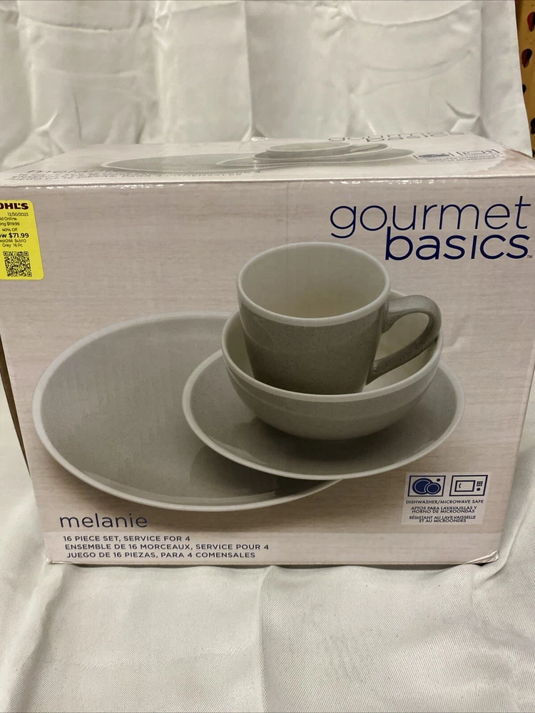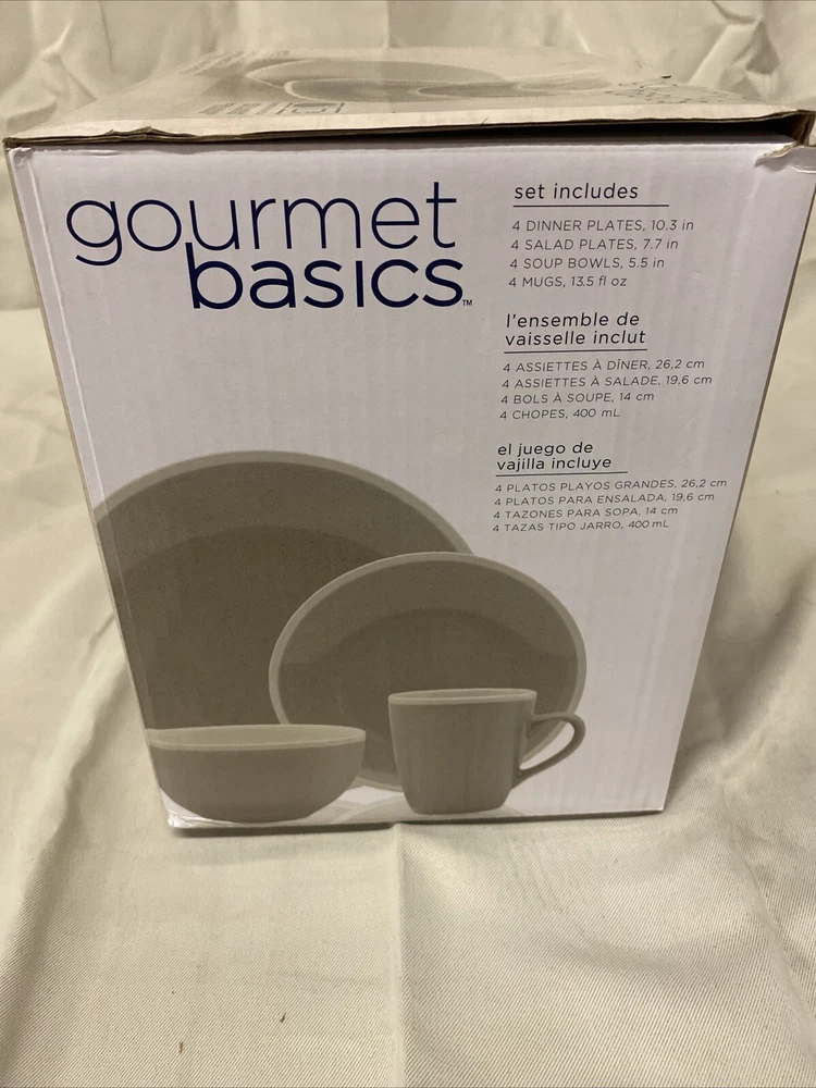 This 16-piece set of gourmet basics is perfect for any kitchen. The set includes four plates, four salad plates, soup bowls, and four mugs, all made of high-quality ceramic material. With this set, you'll be able to enjoy your meals in style and comfort. The elegant design of the plates and bowls will impress your guests, and the durable ceramic material ensures that they'll last for years to come. Whether you're hosting a dinner party or just enjoying a casual meal with your family, this set is sure to impress. SKU: w7 DATE: 8/26/24 LISTED BY: TH, SK, TM CONDITION: Open Box With Box Damgage SIZE/SHADE: 16 PCS / White