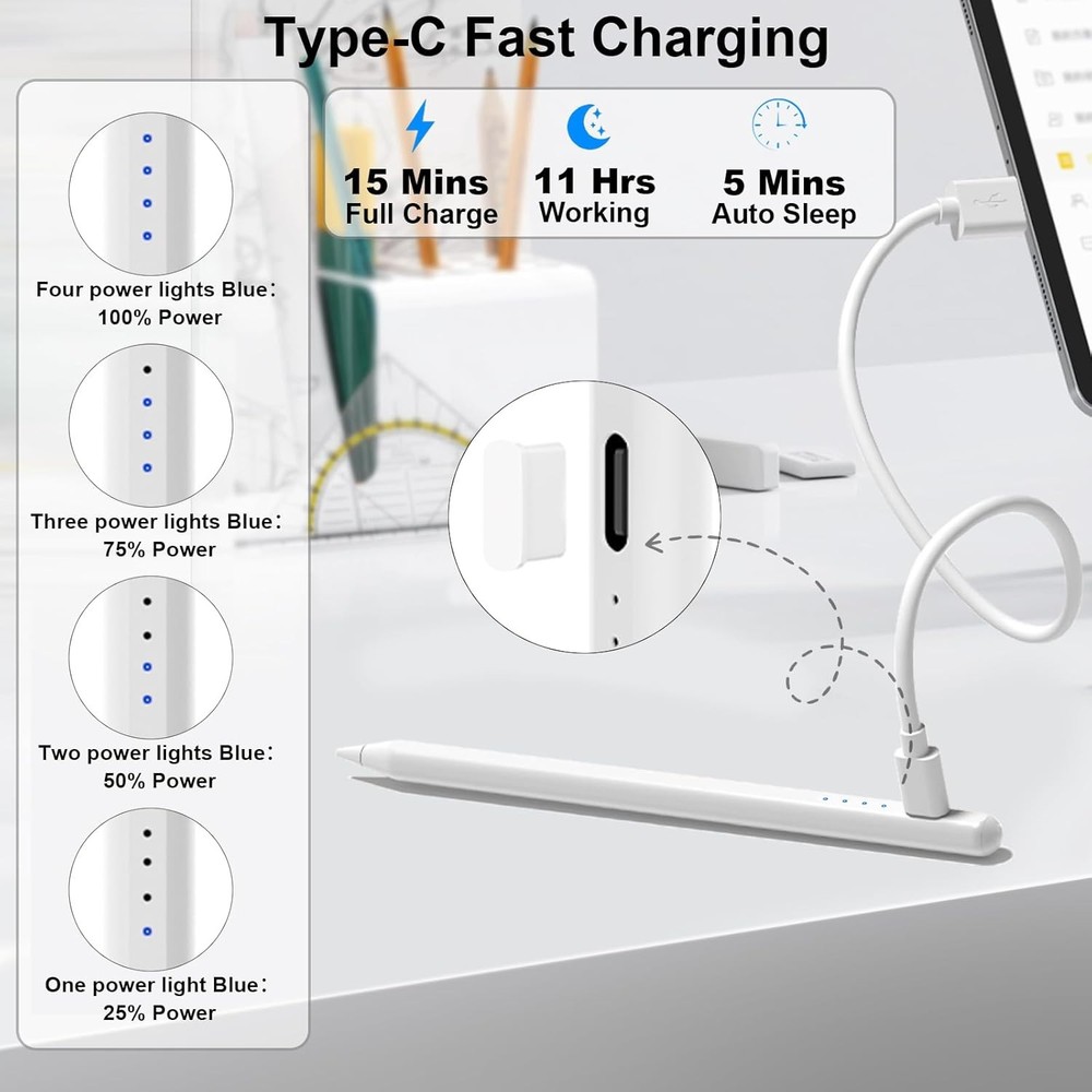 iPad Stylus Pen 2018-2025 - USB-C Fast Charging Magnetic Tilt-Sensitive Apple Pencil Alternative