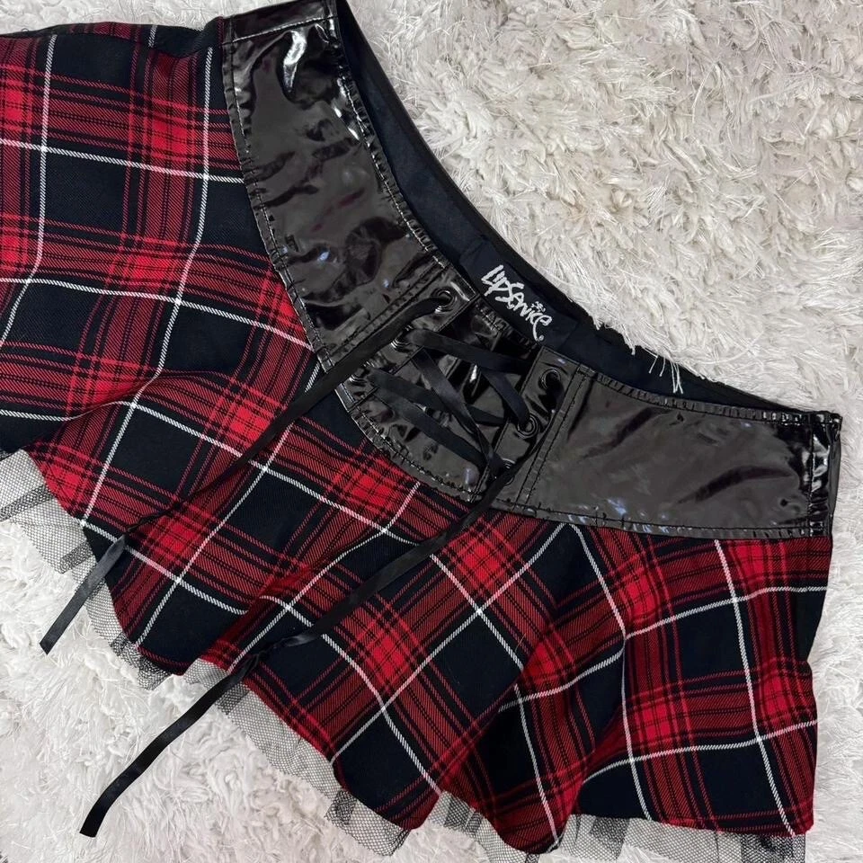 Lip service red plaid mini skirt in a size large In good condition Super cute lace up detail on front #lipservice #miniskirt