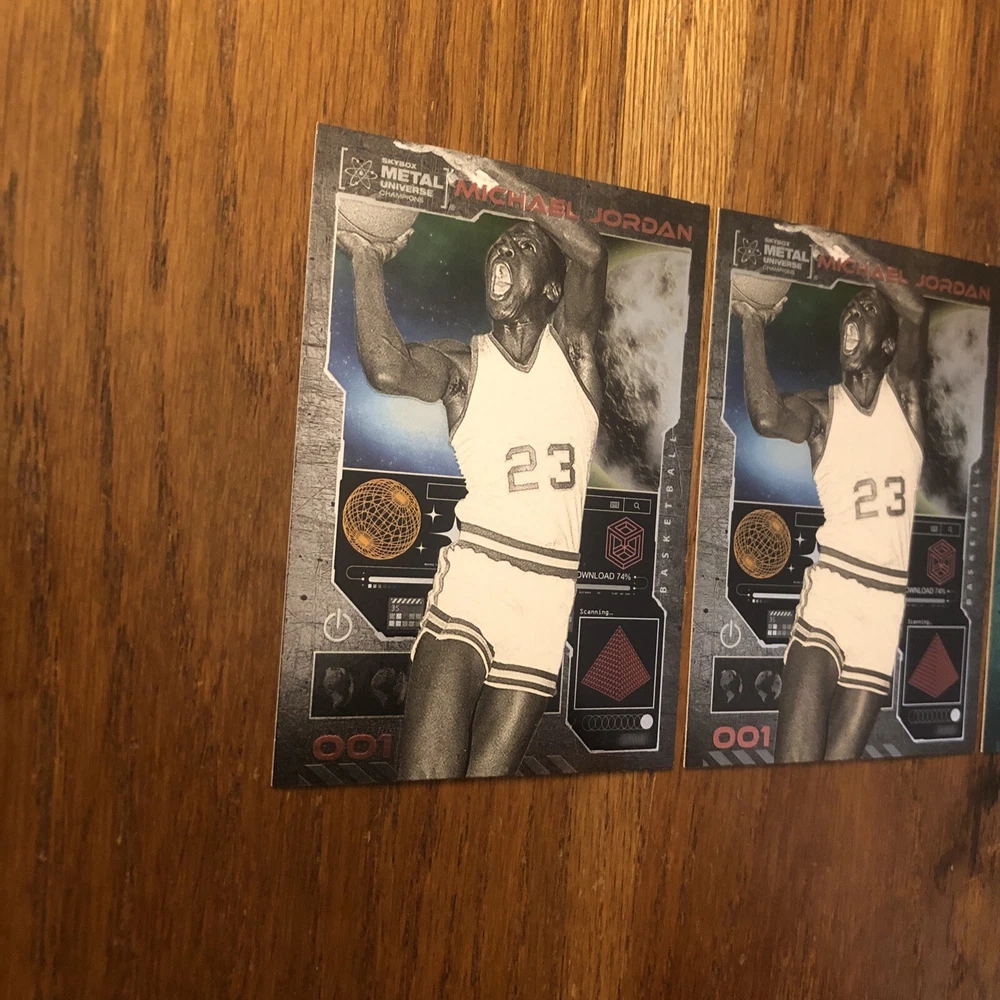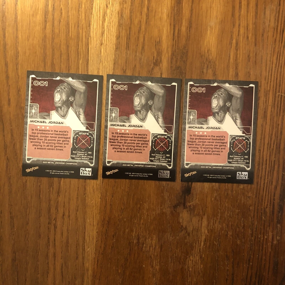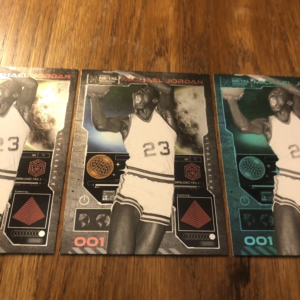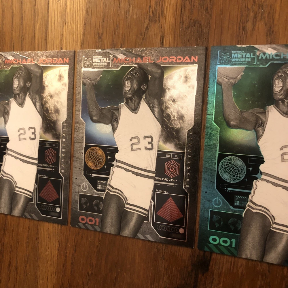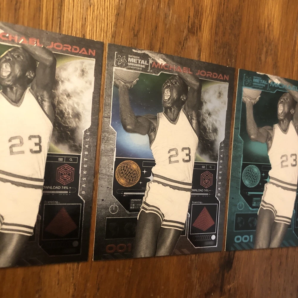 Winner gets all 3 Jordan cards from 2023 Metal Universe Champions set pictured. All cards are in excellent condition with most suitable for grading (See pics). Always a good time to invest in the all time greats like Jordan. Lot includes: 2x Base #1 1x Aqua Parallel #1 I will combine shipping for multiple items so please check out my other listings!