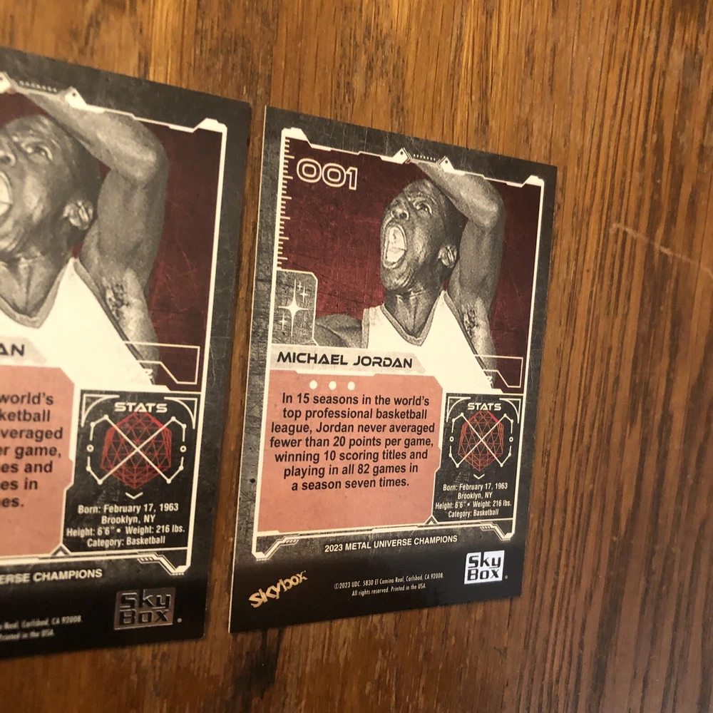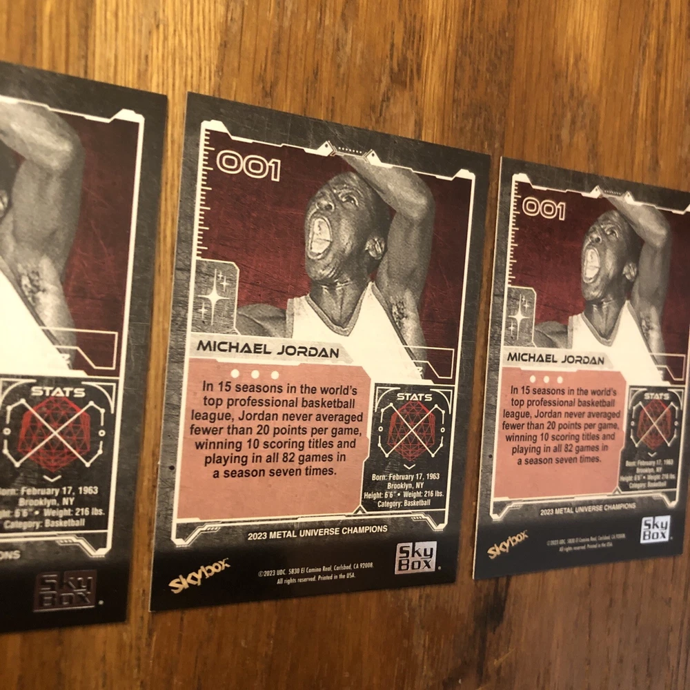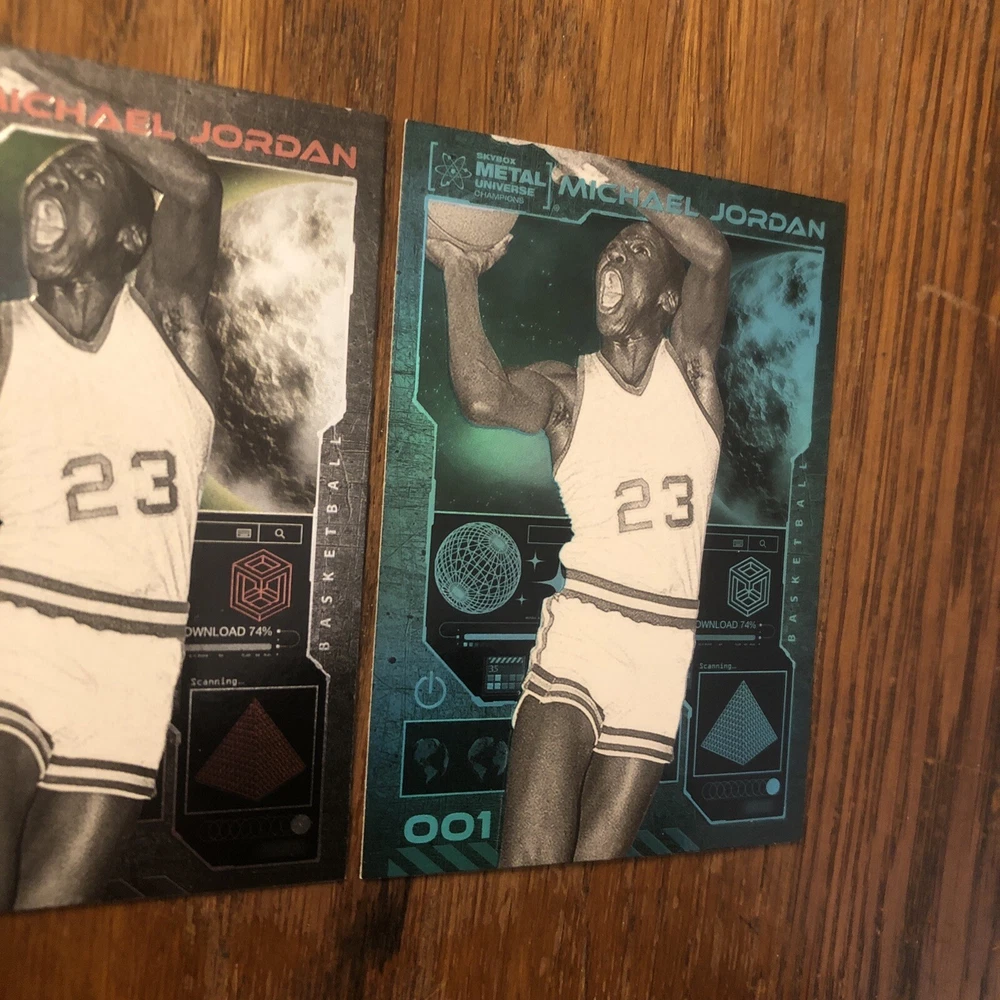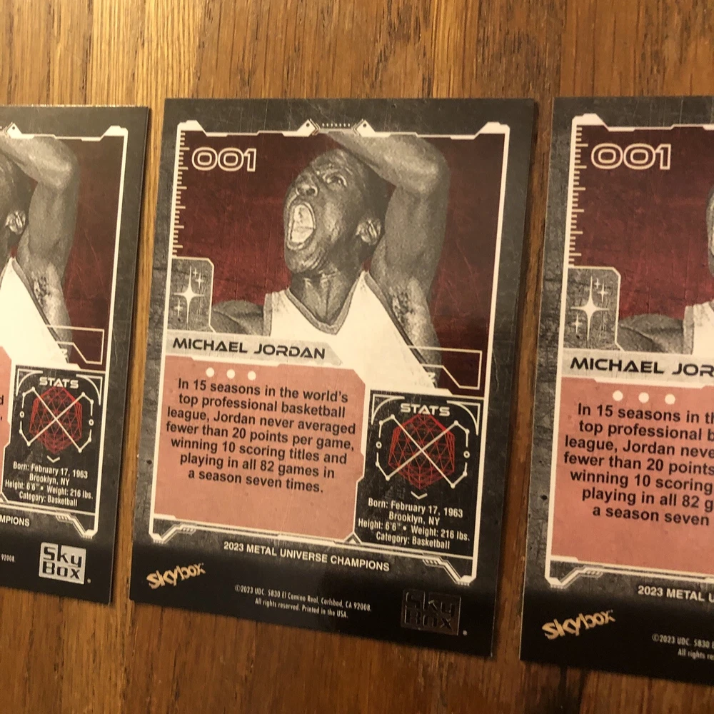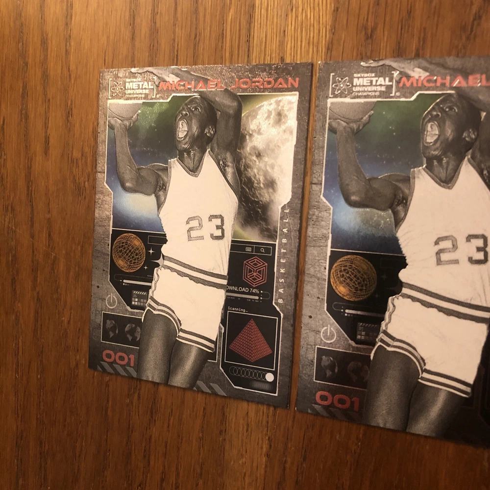 Winner gets all 3 Jordan cards from 2023 Metal Universe Champions set pictured. All cards are in excellent condition with most suitable for grading (See pics). Always a good time to invest in the all time greats like Jordan. Lot includes: 2x Base #1 1x Aqua Parallel #1 I will combine shipping for multiple items so please check out my other listings!