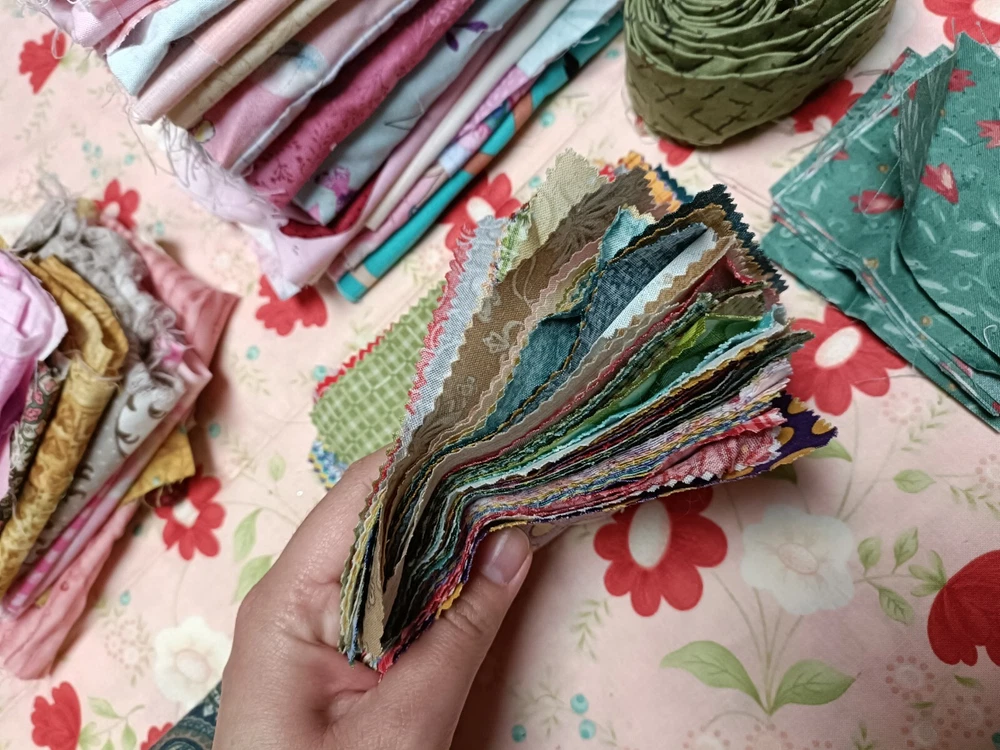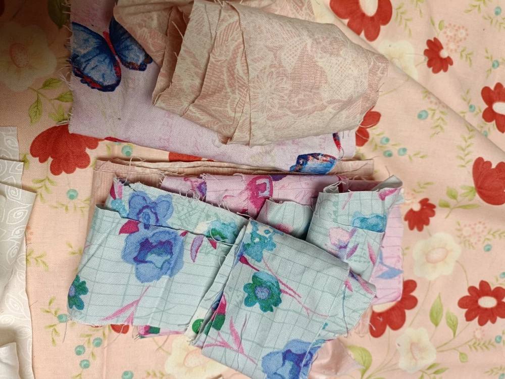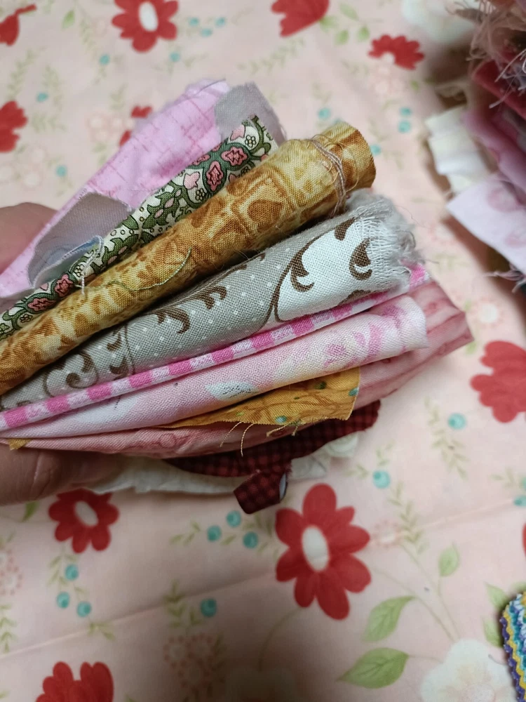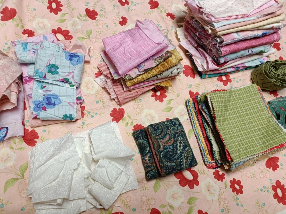 Beautiful cotton scrap fabric lot with different patterns/colors. Some are strips, some are squares, rectangles or pieces. Perfect for fabric crafts/quilting.