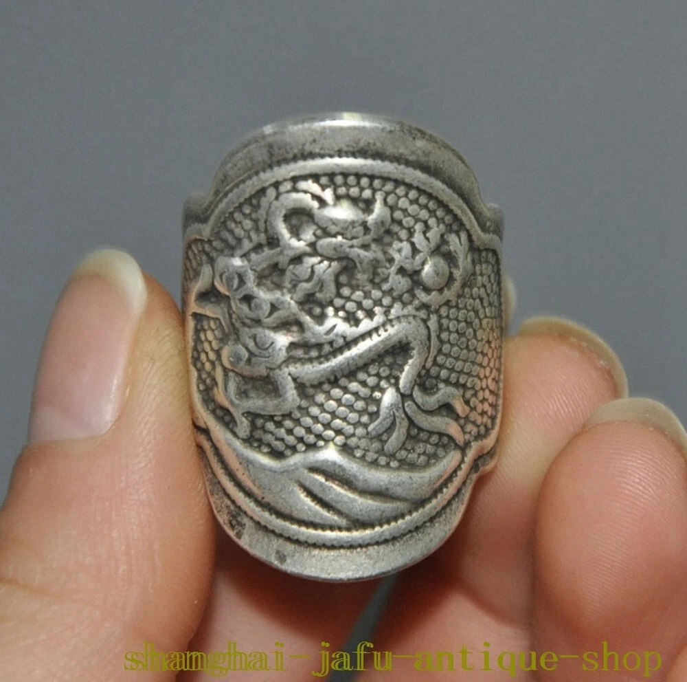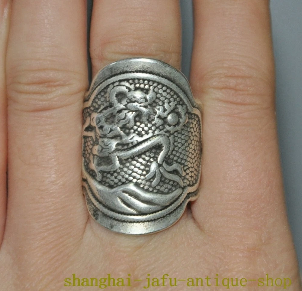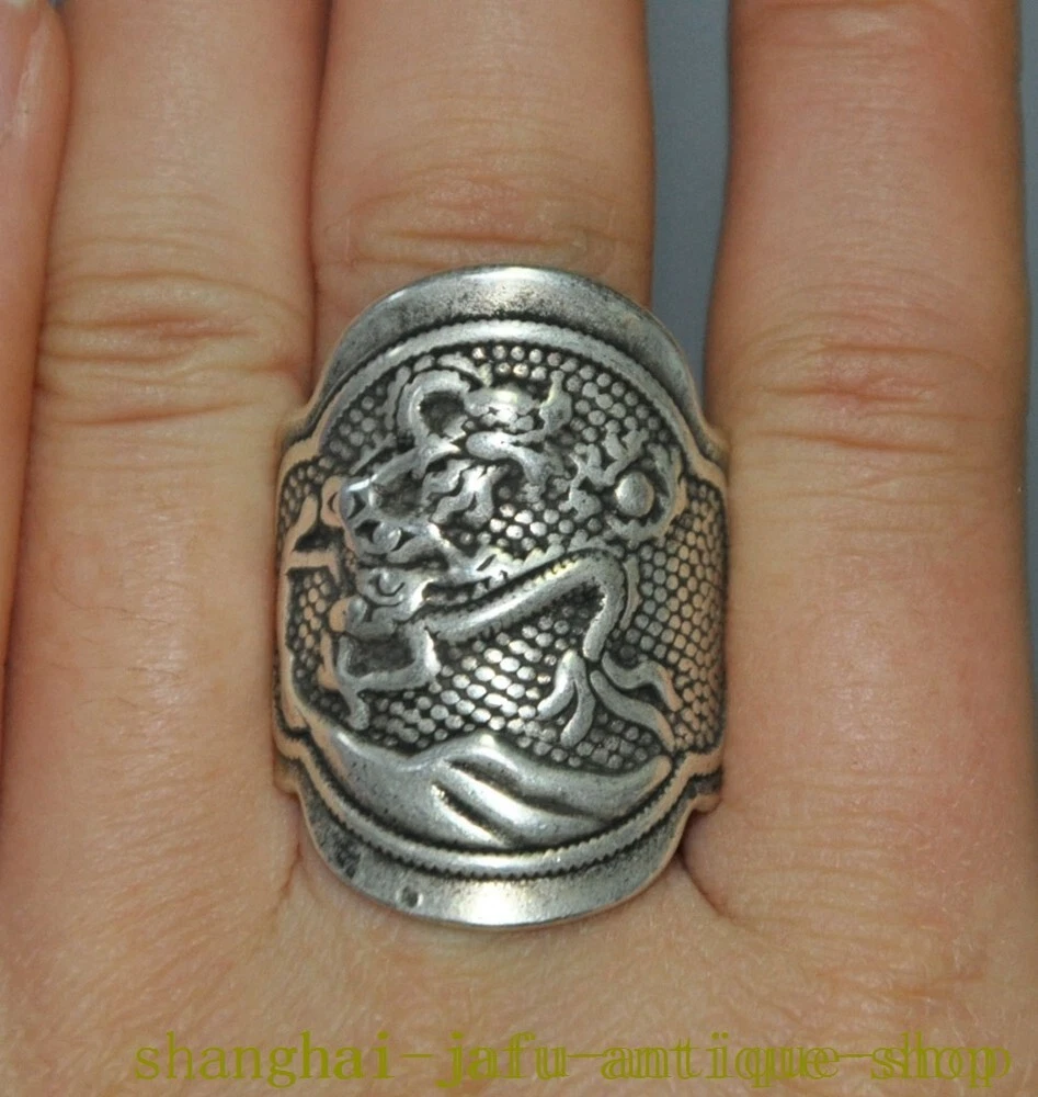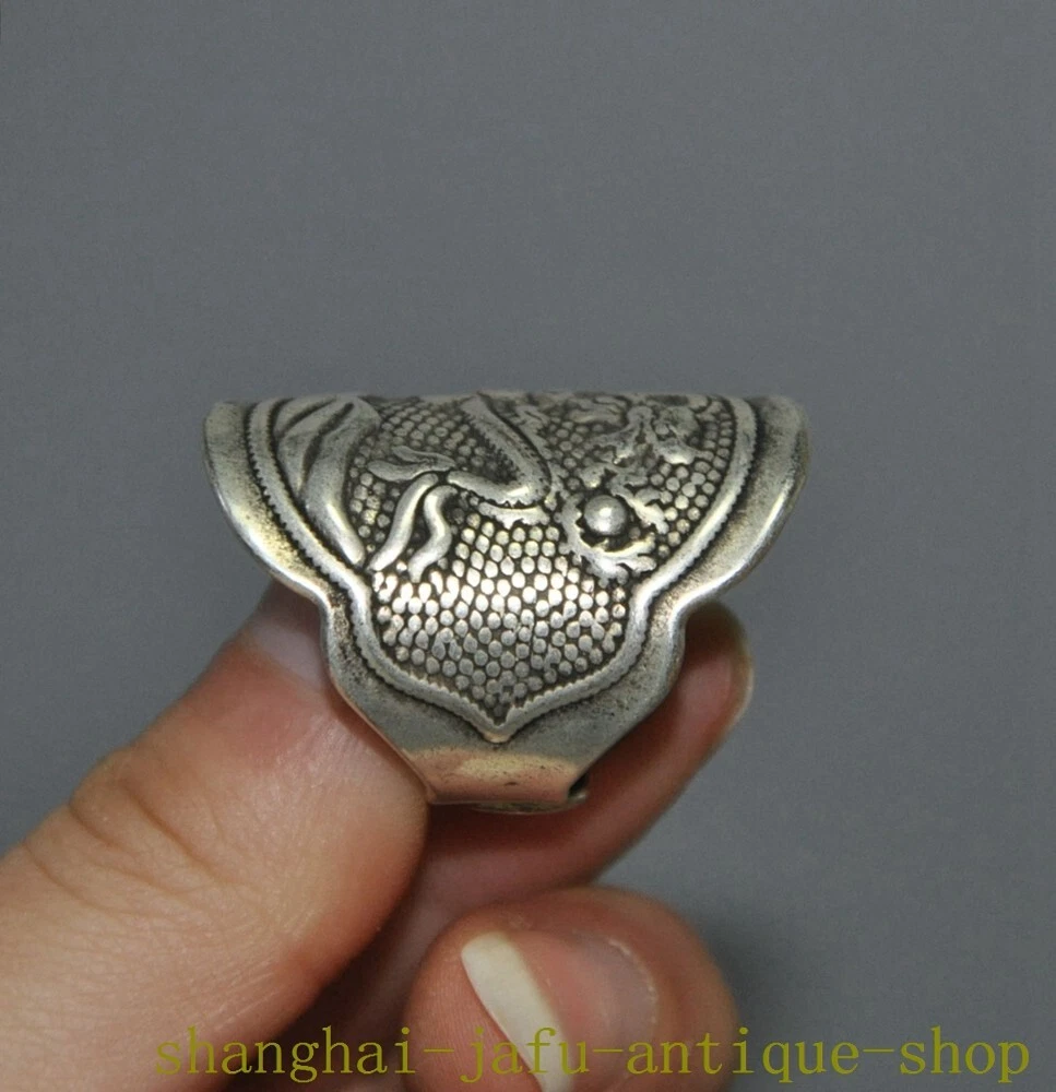 Here is an old China dynasty Tibetan silver Ancient dragon loong amulet Ring statue , As you can see the image, It is in good condition, and was created by skilled craftsmen in traditional style with fine handcrafts . This is a great piece of valuable collection, a valuable personal alter or a very good present. the handwork is very fine with incredible detailing. Don't miss out this chance to get it .Wish you good luck! Size: Height: 1.4 inch .Long: 1 inch . breadth: 0.8 inch Inner diameter Size: 0.8 inch Size: Height: 3.5 cm .Long: 2.5 cm . breadth 2 cm Inner diameter Size: 2 cm Weight: 0.1 KG----included the weight of packing materials Materials: Tibetan silver Condition: Good condition Origin: China Shipping cost by EMS Express Mail ( 7------15 days ) : $Free