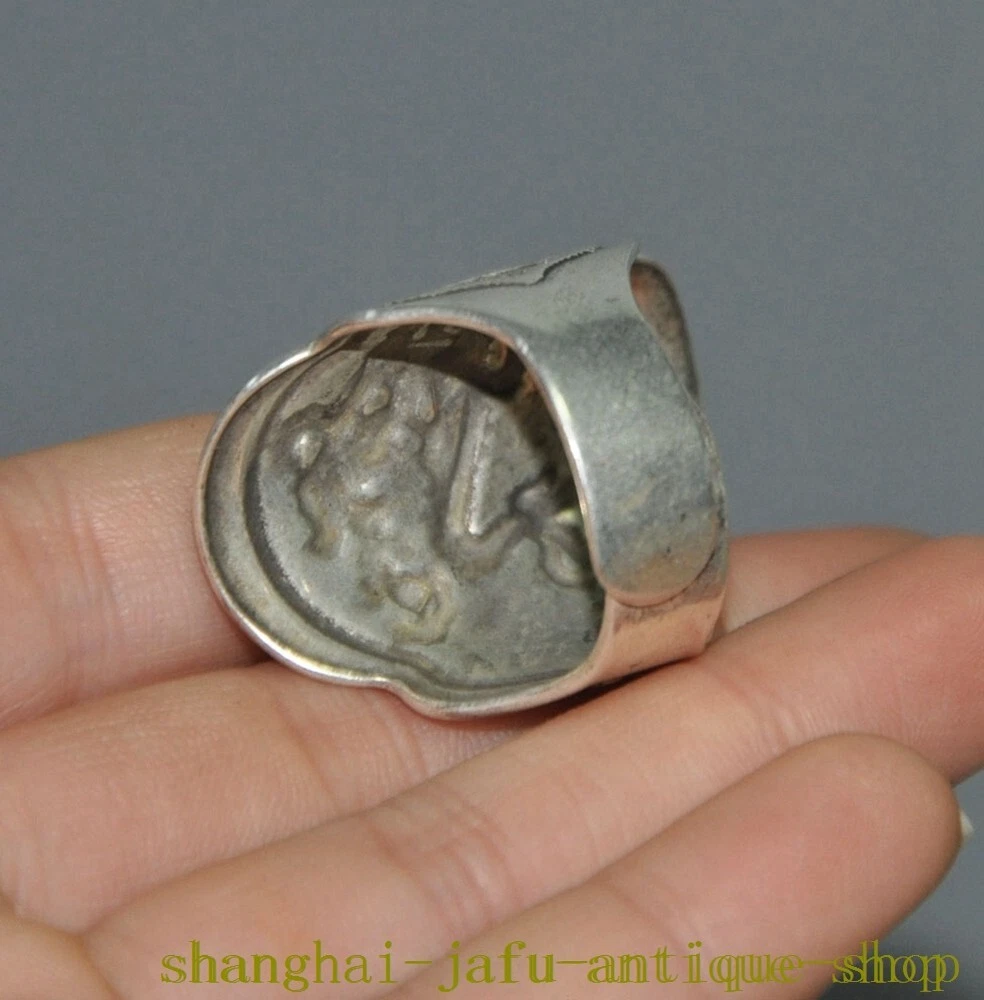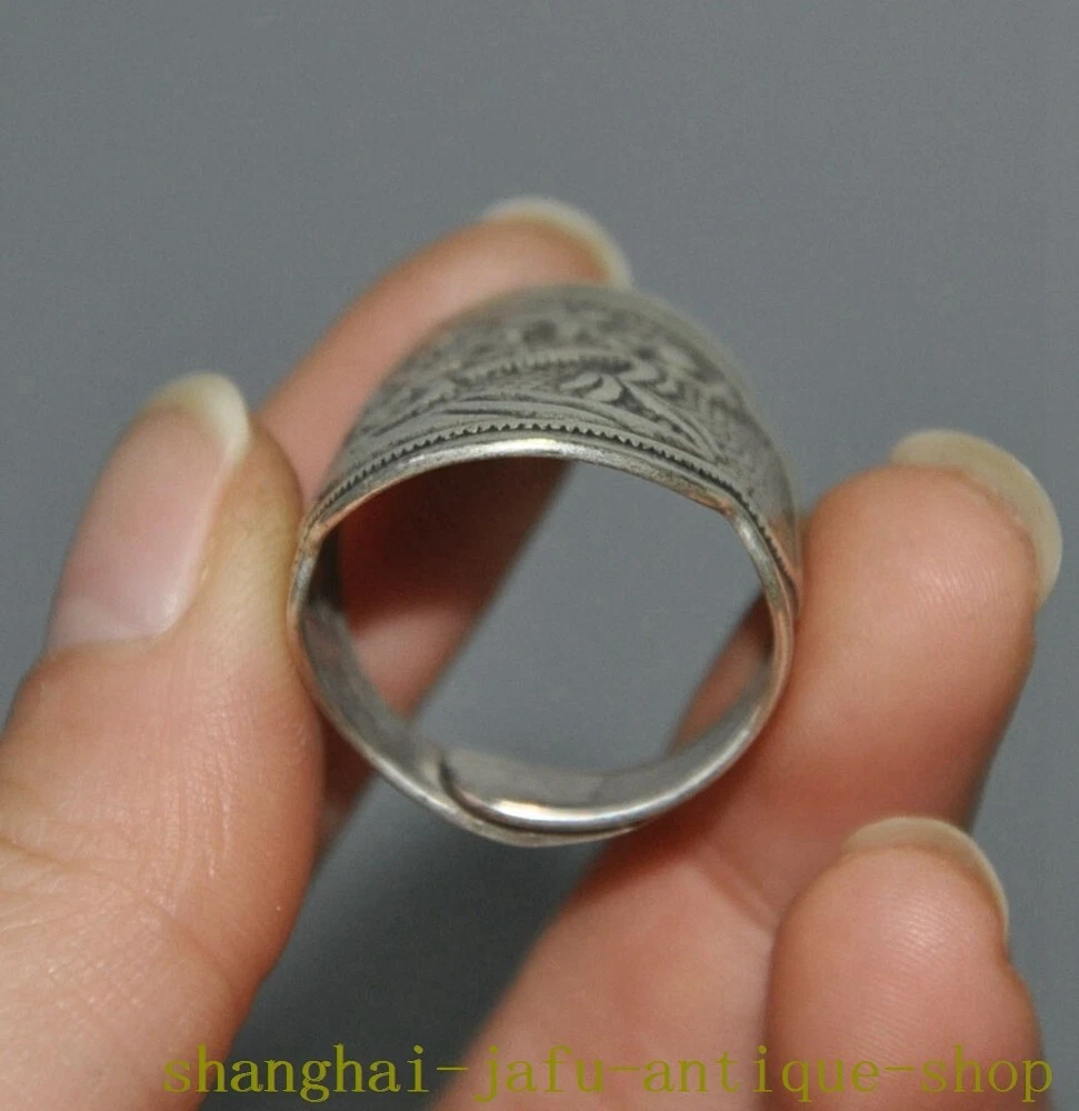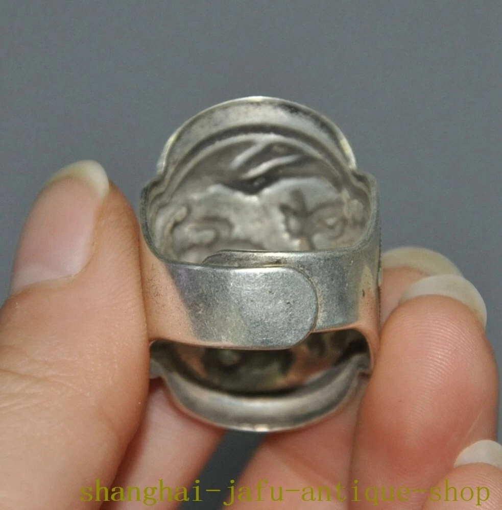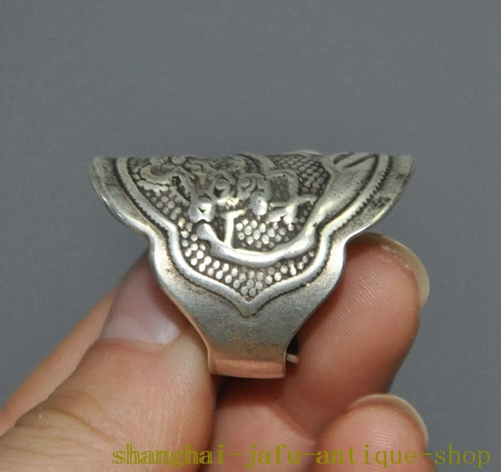 Here is an old China dynasty Tibetan silver Ancient dragon loong amulet Ring statue , As you can see the image, It is in good condition, and was created by skilled craftsmen in traditional style with fine handcrafts . This is a great piece of valuable collection, a valuable personal alter or a very good present. the handwork is very fine with incredible detailing. Don't miss out this chance to get it .Wish you good luck! Size: Height: 1.4 inch .Long: 1 inch . breadth: 0.8 inch Inner diameter Size: 0.8 inch Size: Height: 3.5 cm .Long: 2.5 cm . breadth 2 cm Inner diameter Size: 2 cm Weight: 0.1 KG----included the weight of packing materials Materials: Tibetan silver Condition: Good condition Origin: China Shipping cost by EMS Express Mail ( 7------15 days ) : $Free