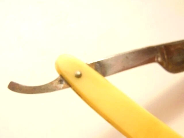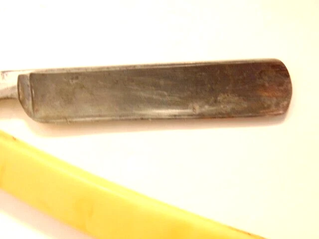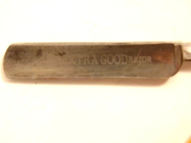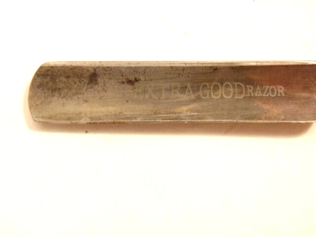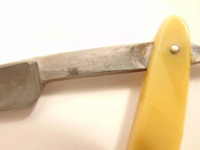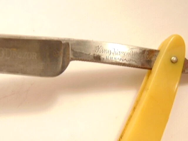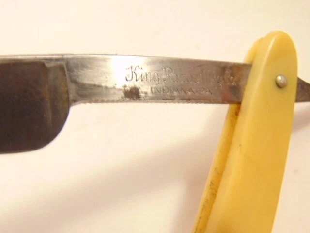 Here is a pre-owned straight razor labeled on the blade "King's Extra Good Razor". Near the rivet, the straight razor shows the maker's information - King's Razor Mfg. Co., Indiana, PA. The razor measures about 6 inches long. The blade alone is about 5 1/2 inches long and 5/8th inches wide. Please see pictures and ask any questions . Thank you for looking. (Inv 24,770)