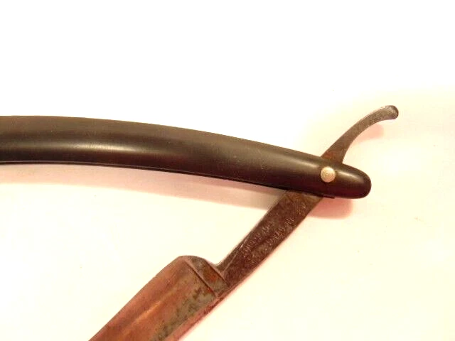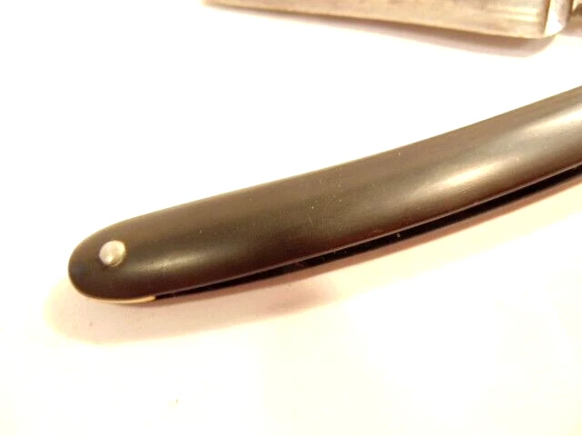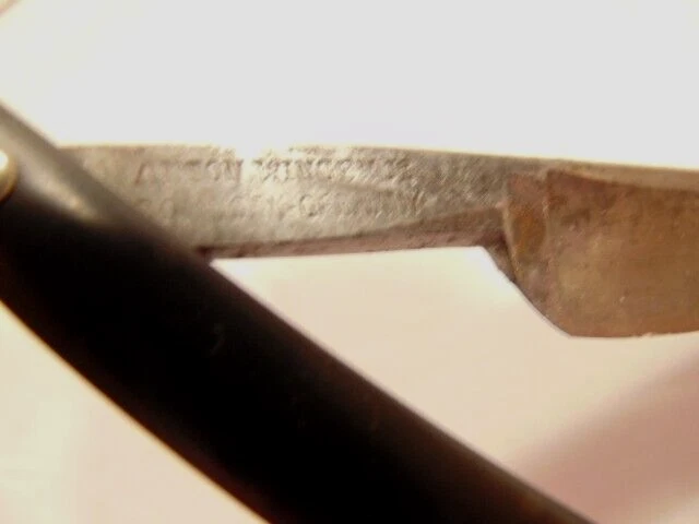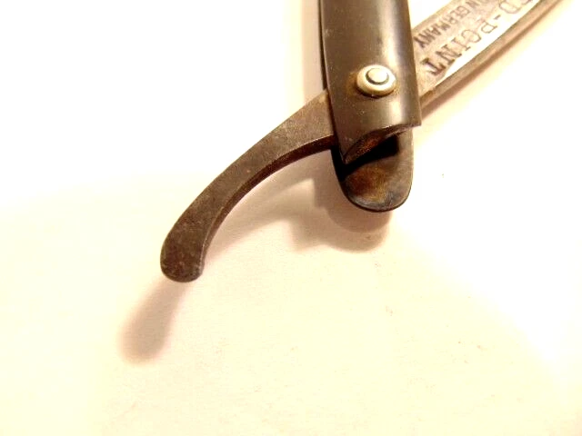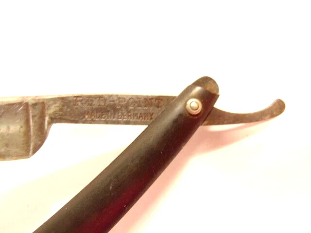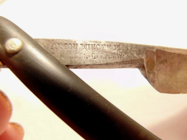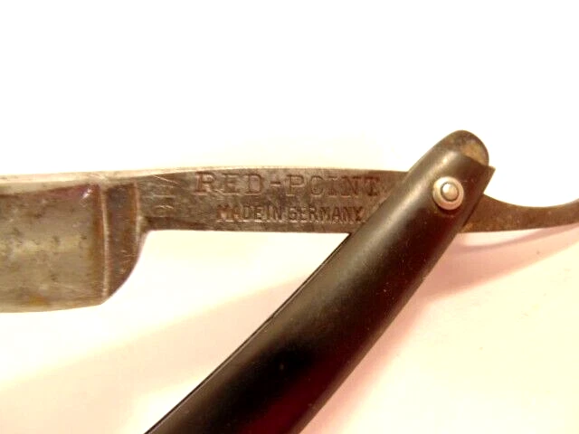 Here is an older straight razor marked "Red-Point" on one side, and Anton Wincen Jr,, Solingen, Germany onthe opposite side. The razor measures about 6 1/8th inches long. The blade measures about 5 1/2 inches long and is about 5/8th inches wide. It shows staining, dirt and wear. Please see the pictures and ask any questions. Thank you for looking. (Inv 22,972)