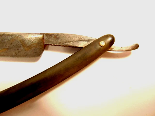 vintage Geo. Worthington, Cleveland, Ohio straight razor with whitish handle